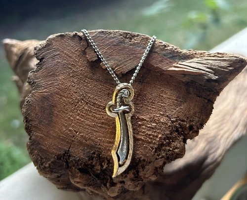 VINTAGE SCIMITAR WARRIOR CHARM SILVER & GOLD NECKLACE