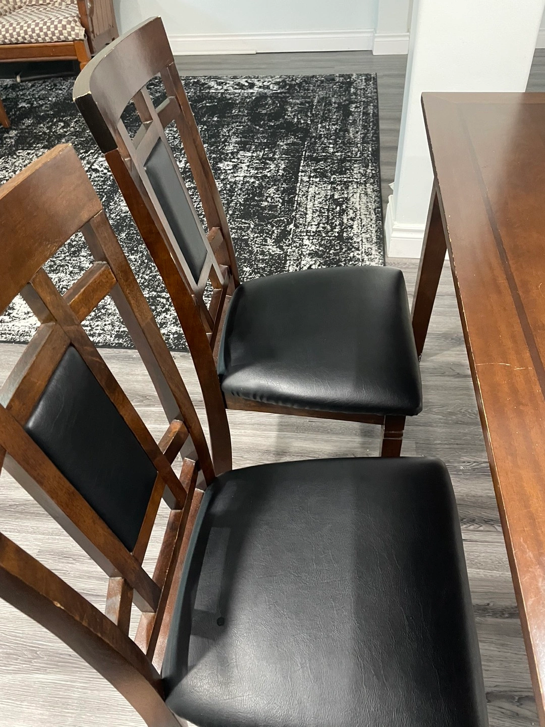 Brick dining table with 4 chairs . Used but in good condition no damage in chairs and little scratch in the table but could be covered with table cloth.can add two more chairs at opposite ends.