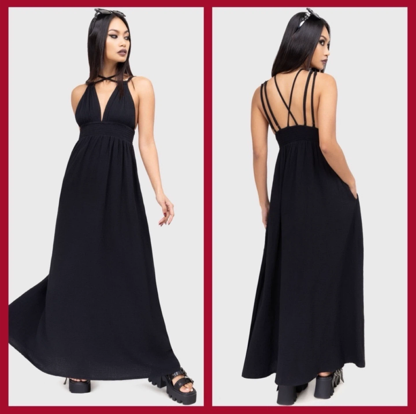 #KillStar #XL #ExtraLarge #BlackGothDress #MaxiDress #LongBlackDress #Goth #Gothic #Alternative #Punk #Spooky #Occult #Maxi #Fall #Winter #V-neck #Nightclub #Club #Fetish #Summer #Spring #DateNight #EveningOut #Dancing #NWT #Vacation #Holiday # #Witch #Concert #Halloween #BrandNew #PlusSize #Plus #KillstarMaxiDress