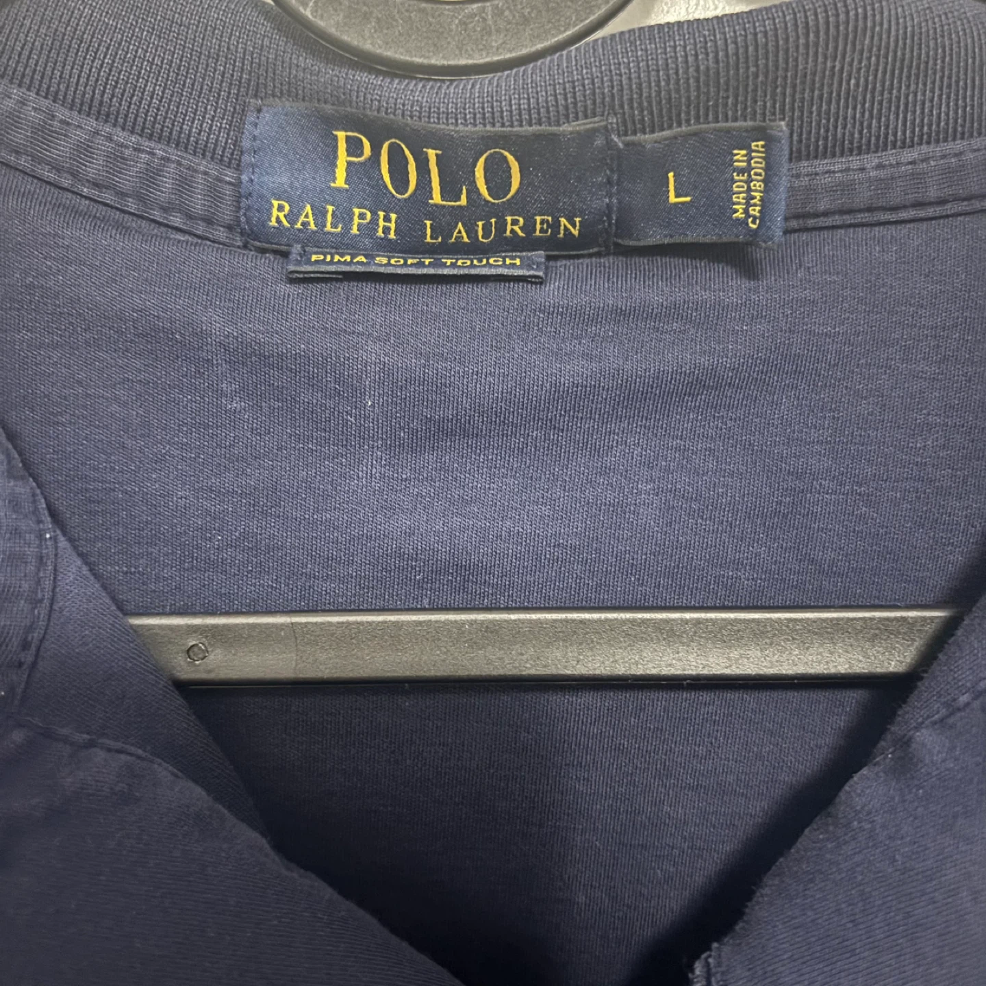 Classic Polo Ralph Lauren polo shirt in navy blue, size L. It's in great condition and made with Pima Soft Touch fabric for a comfortable feel. A timeless addition to any wardrobe!