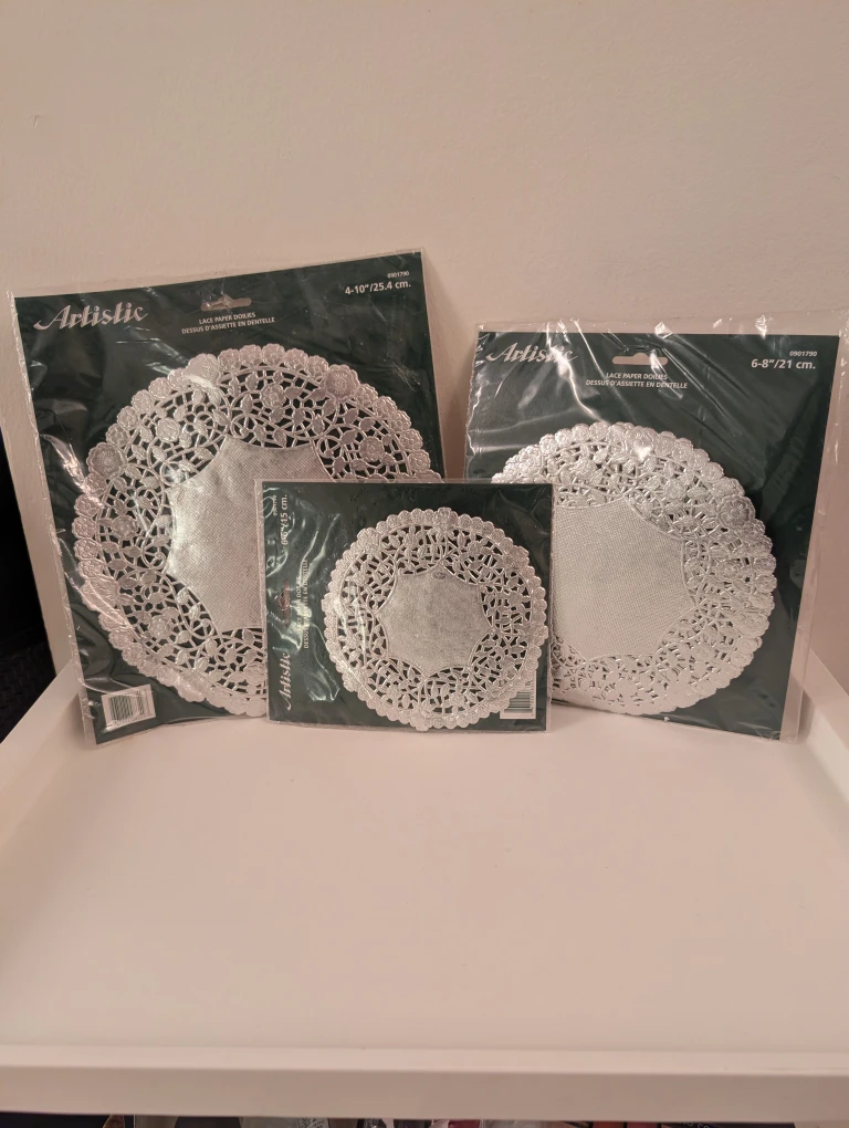 Selling a brand new sealed set of Artistic lace paper doilies.