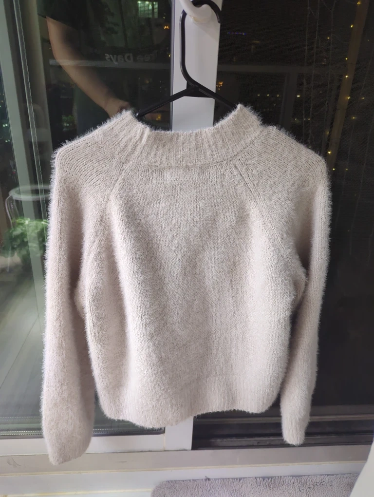 Selling a comfy cream-coloured sweater! It's in great condition and perfect for staying warm on chilly days. The soft texture makes it extra cozy to wear. If you're interested, feel free to send me a message!