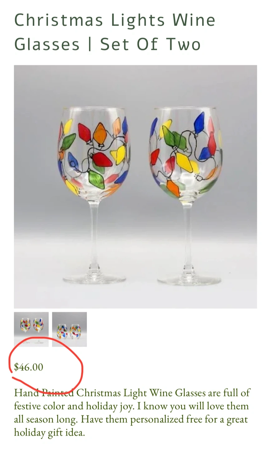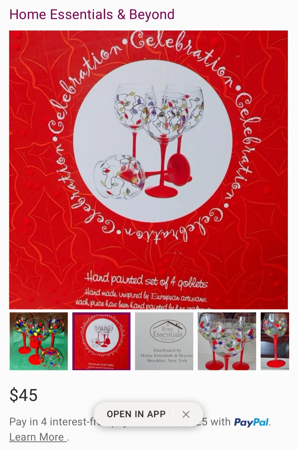 Set of 4 hand-painted wine glasses. These are from the Celebration series and feature Christmas festive design.