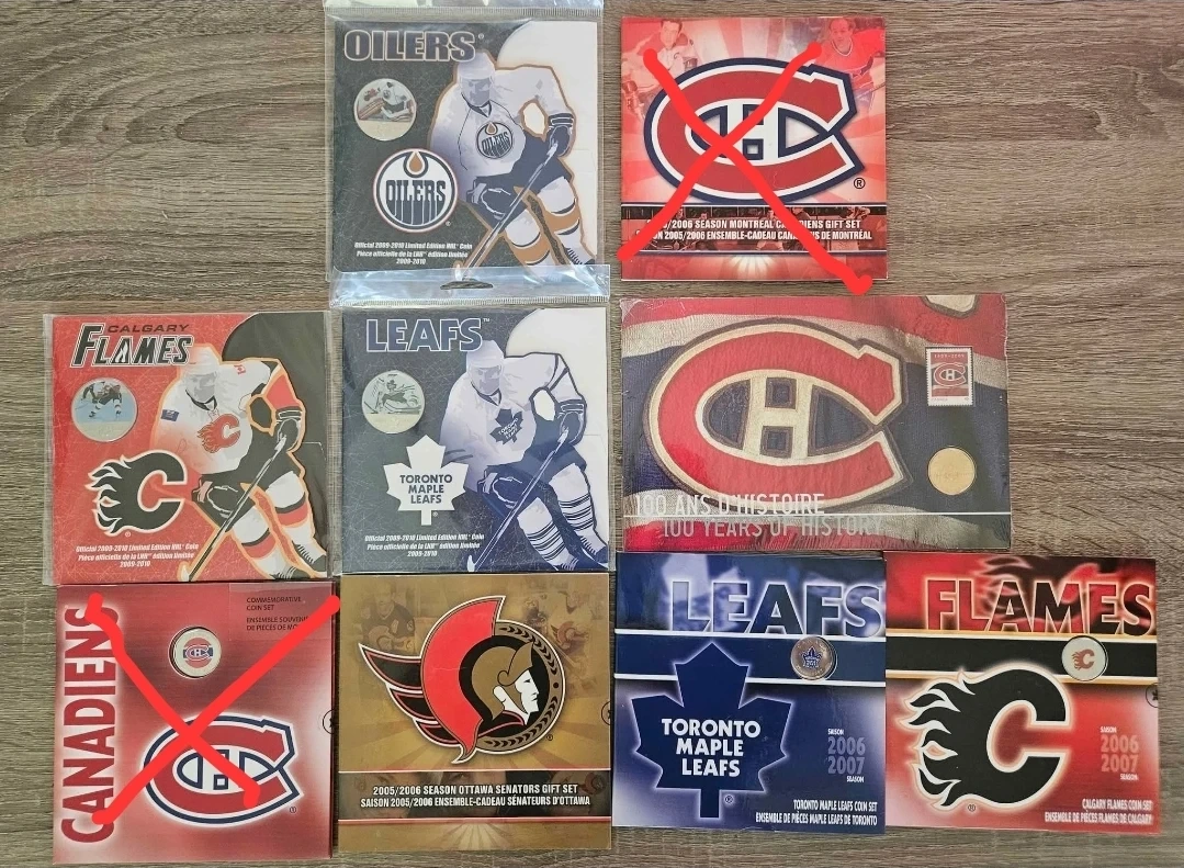 I have some NHL hockey team coin sets. They are in good condition! $20 each set. Most still sealed. Coins have never been taken out. I would do a deal if someone wanted the rest.