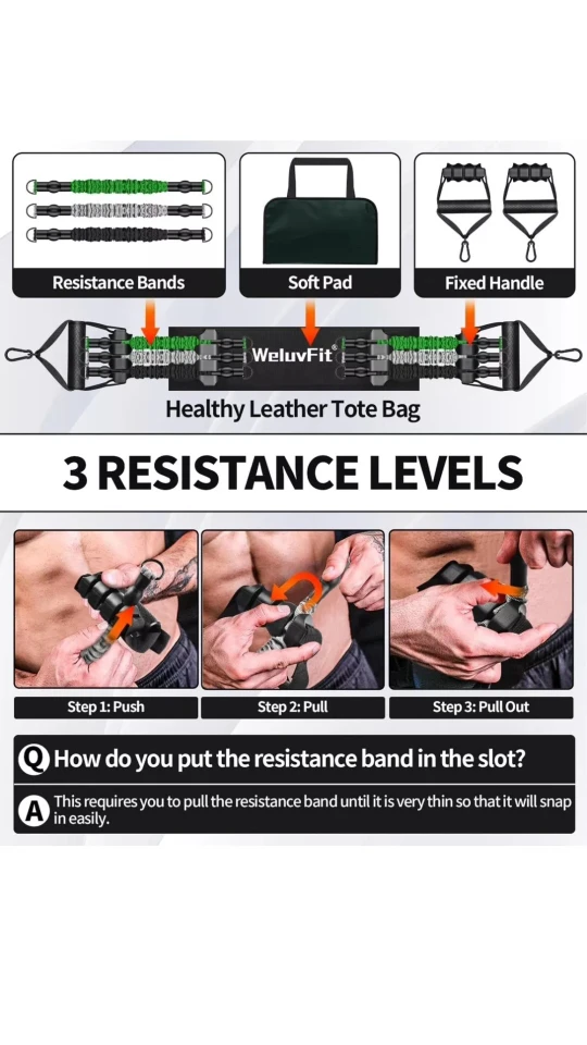 Get a full body workout with this WeluvFit Pilates bar kit! It comes with a three-section Pilates bar, two adjustable straps, two ab rollers, two foot straps, two handles, and six resistance bands of different pounds. It also includes a small portable gym bag for easy storage and transport. The bands are made of 100% natural latex tubing and come in 3 pairs with different resistance combinations
