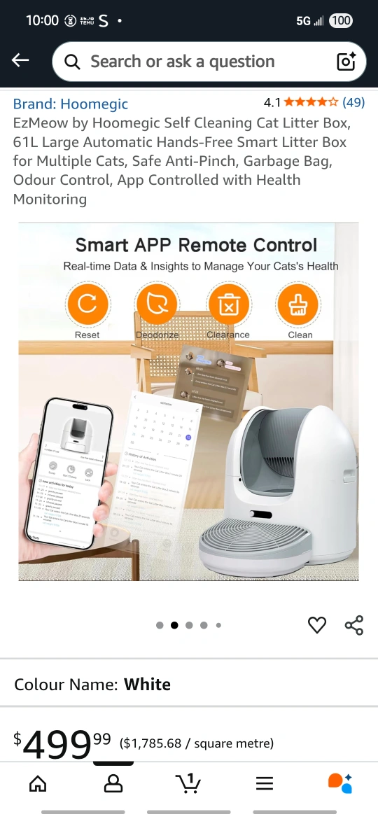 Selling a Hoomagic EzMeow self-cleaning cat litter box. It's a large automatic hands-free smart litter box, perfect for multiple cats. It features safe anti-pinch technology, a garbage bag, odour control, and app-controlled health monitoring. Retails for $499.99!