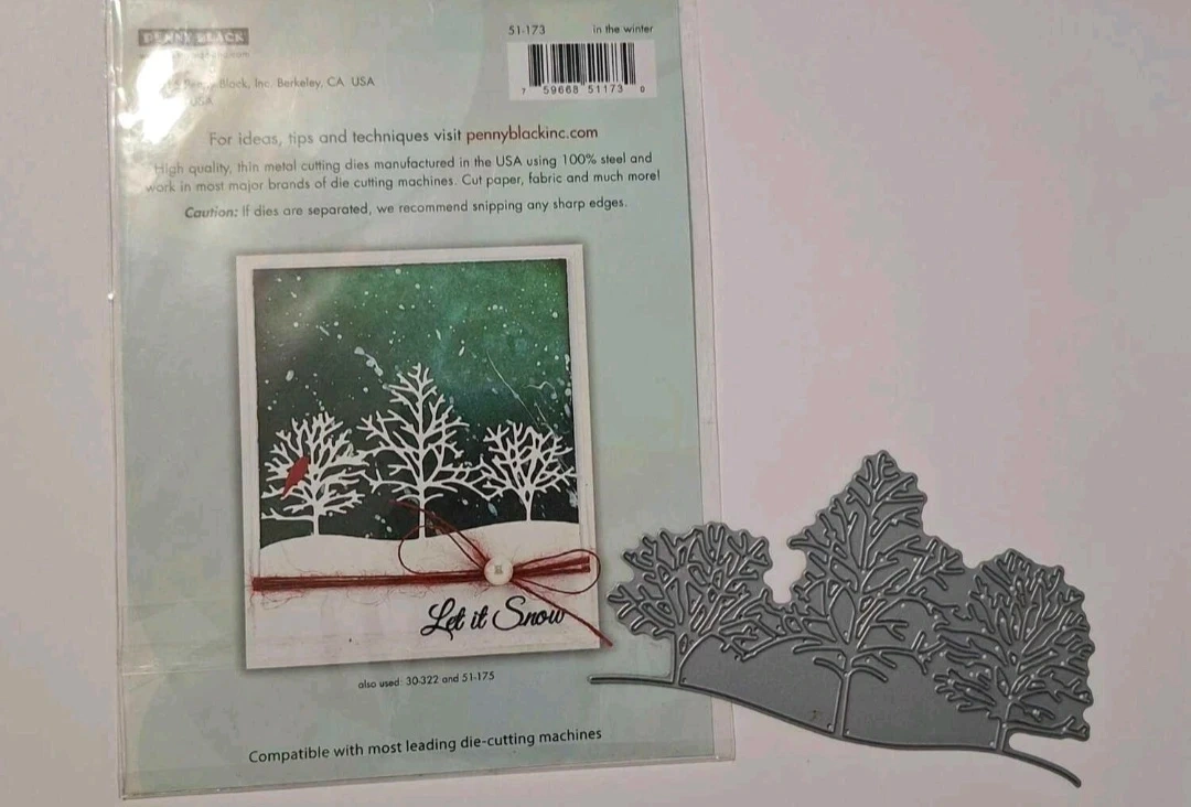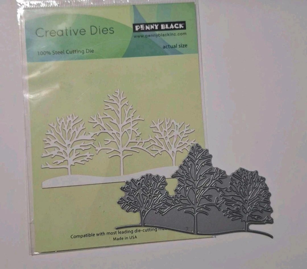 Penny Black Creative Dies featuring a winter trees design. These are 100% steel cutting dies and are compatible with most leading die-cutting machines. Perfect for your paper crafting projects!