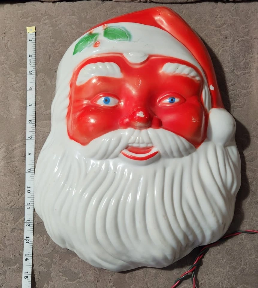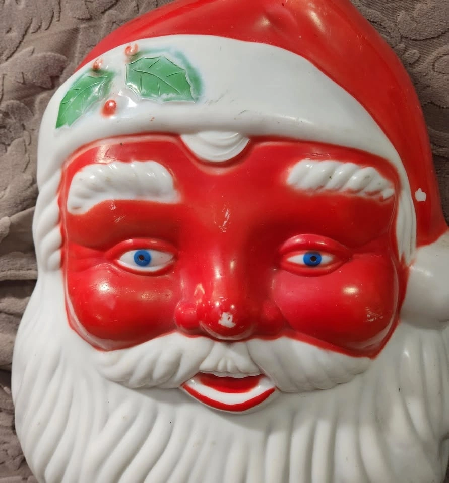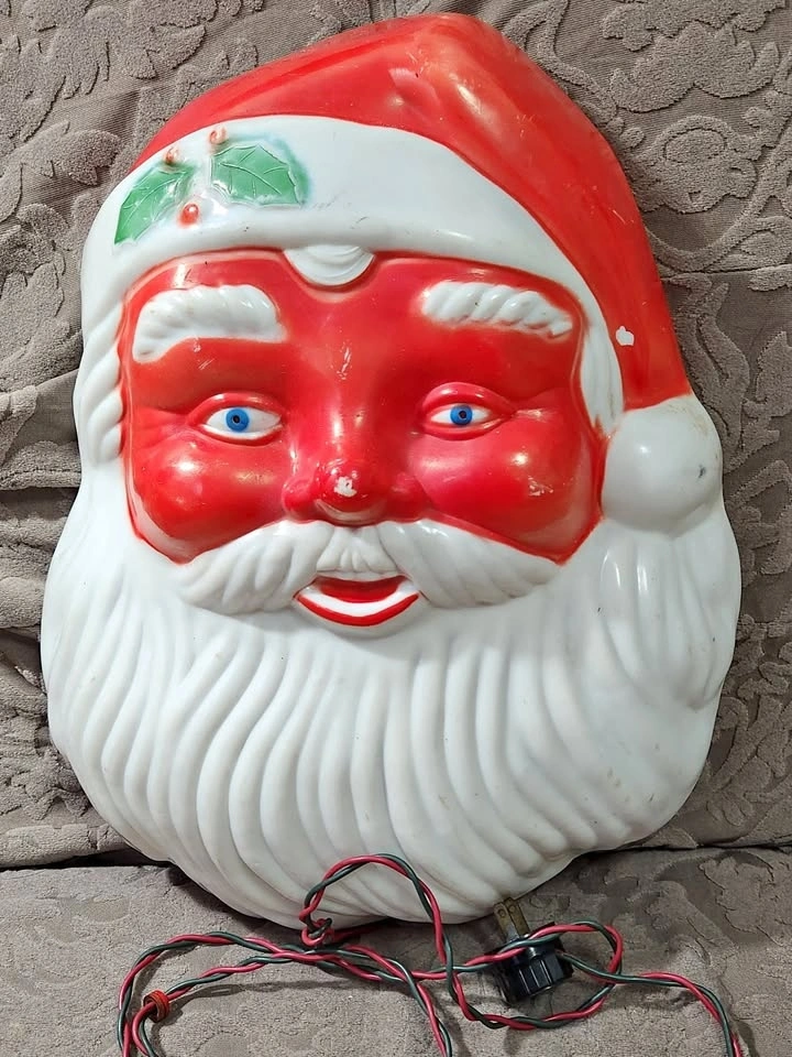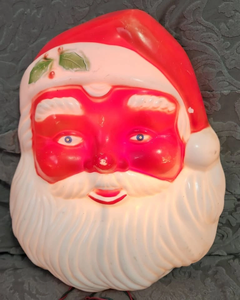 Vintage Blow Mold Light Up Santa Face - in perfect working order