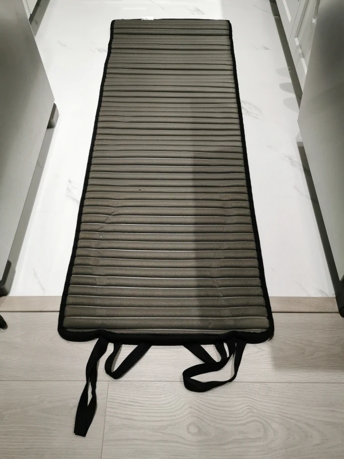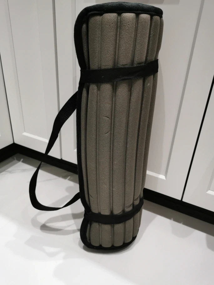 Selling a folding cushion mat in great condition! It's grey and comes with a convenient carrying strap, making it easy to store and transport. Perfect for camping or exercise mat.