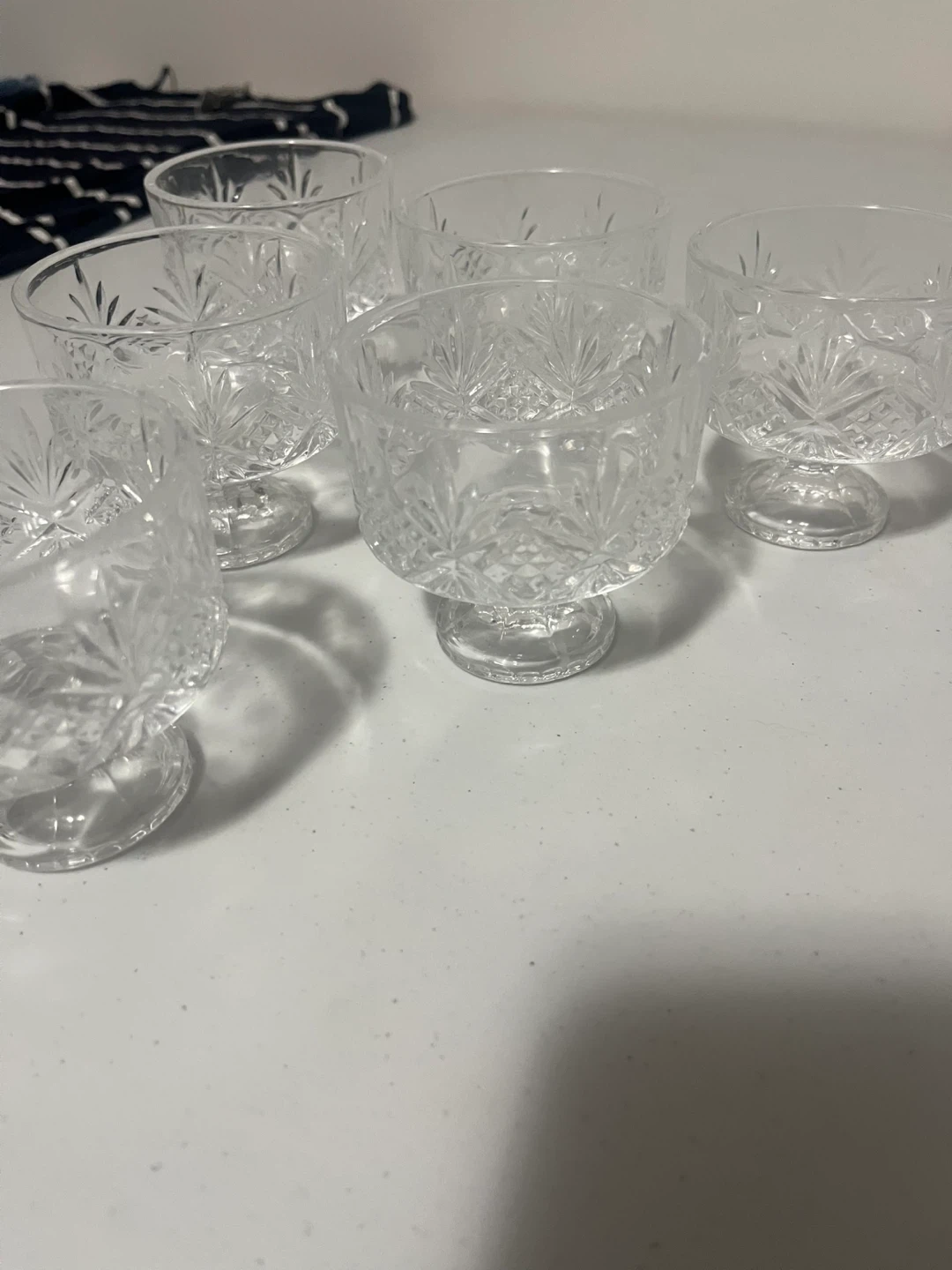Selling a set of six lovely clear crystal dessert cups! They're perfect for serving up your favourite treats and adding a touch of elegance to any occasion. They're in great condition and ready to brighten up your dessert table