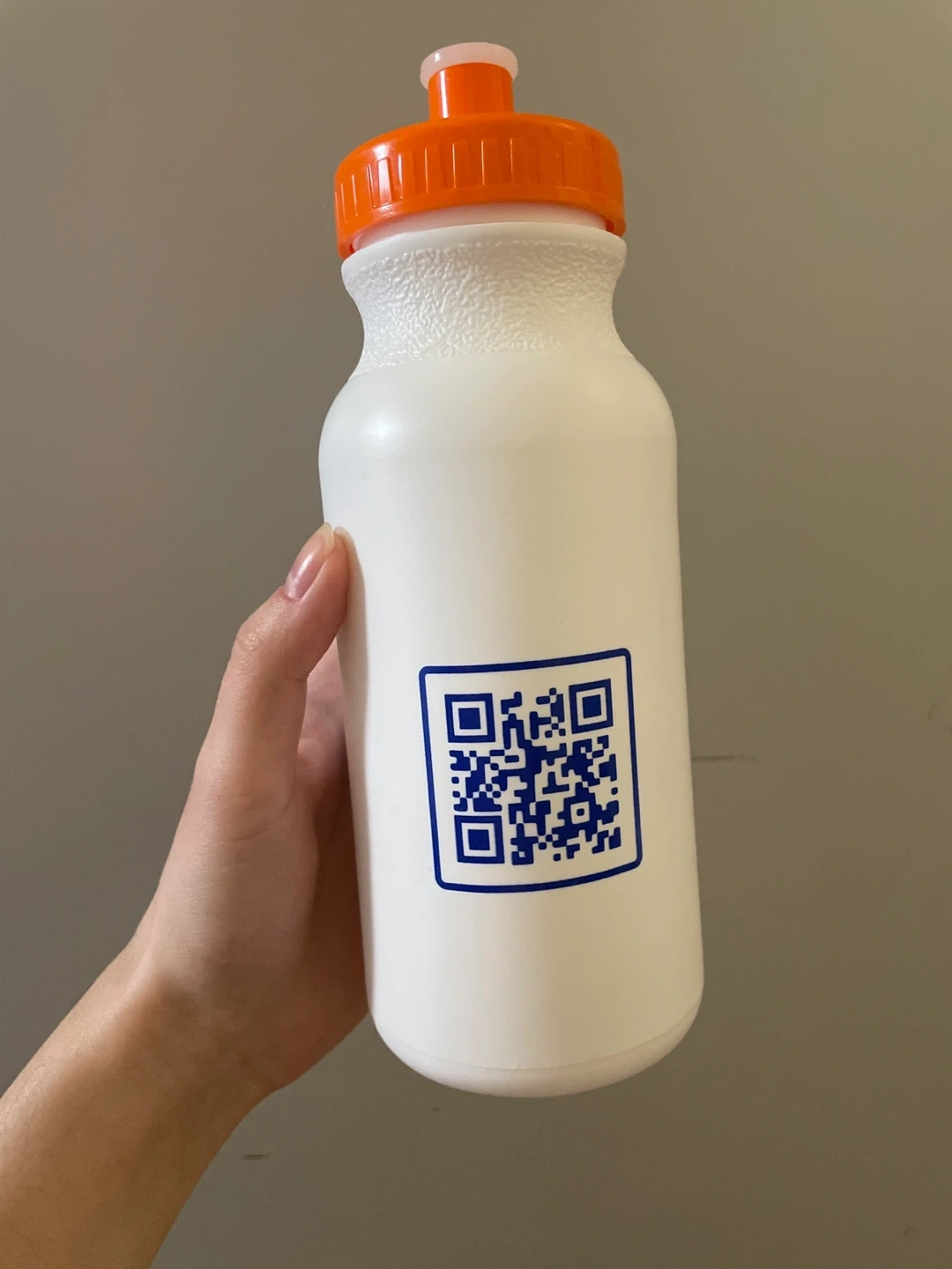 Here's a white water bottle from Children's Early Childhood program! It's perfect for kids and has a convenient design for little hands. The bottle features a blue logo and a bright orange cap.