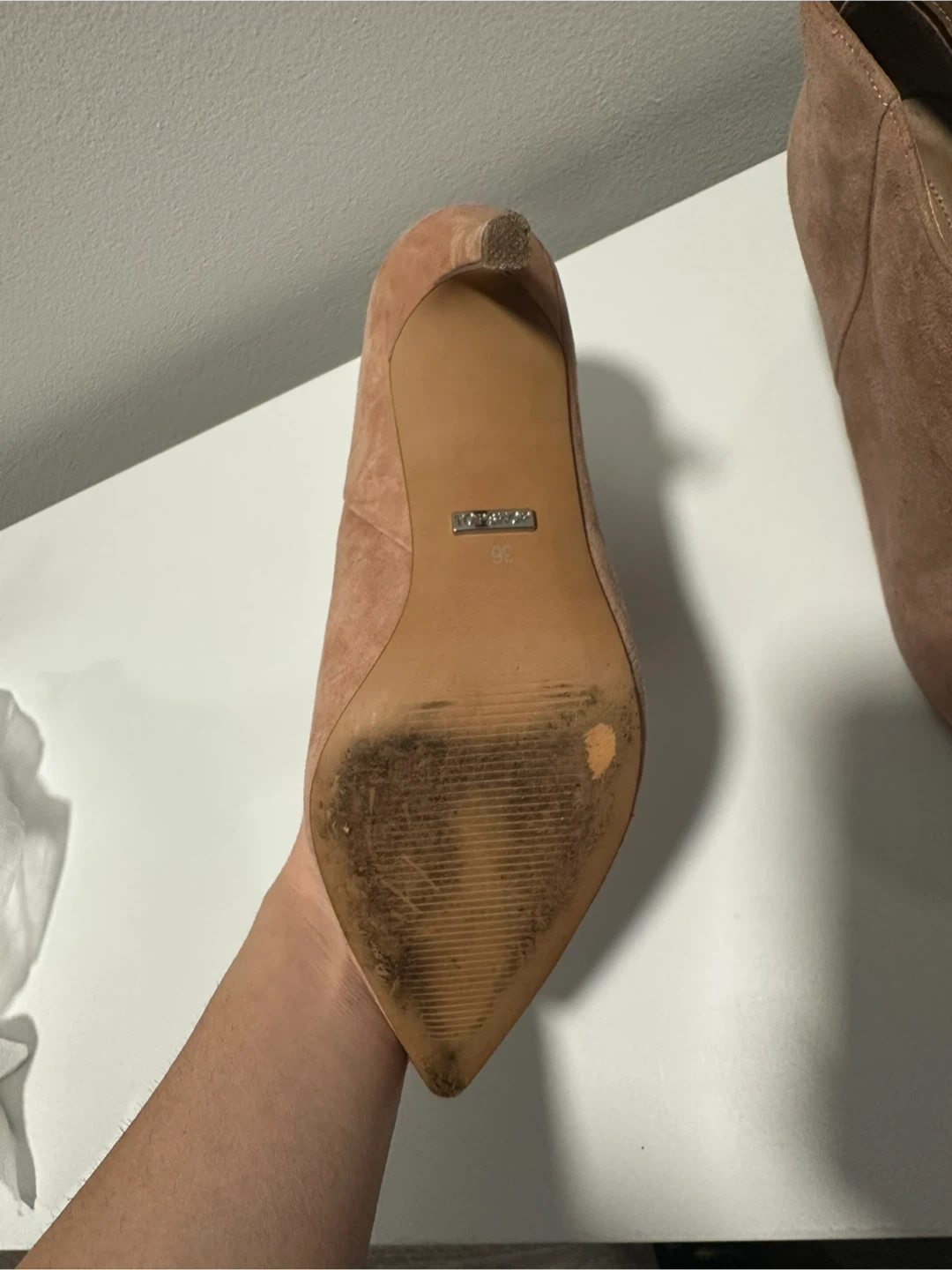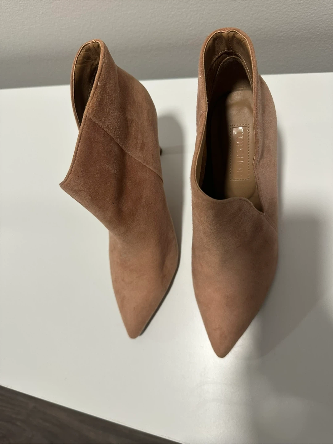 Selling a pair of Topshop ankle boots in a lovely blush colour! They're a European size 36. Please note that there are signs of wear on the soles.
