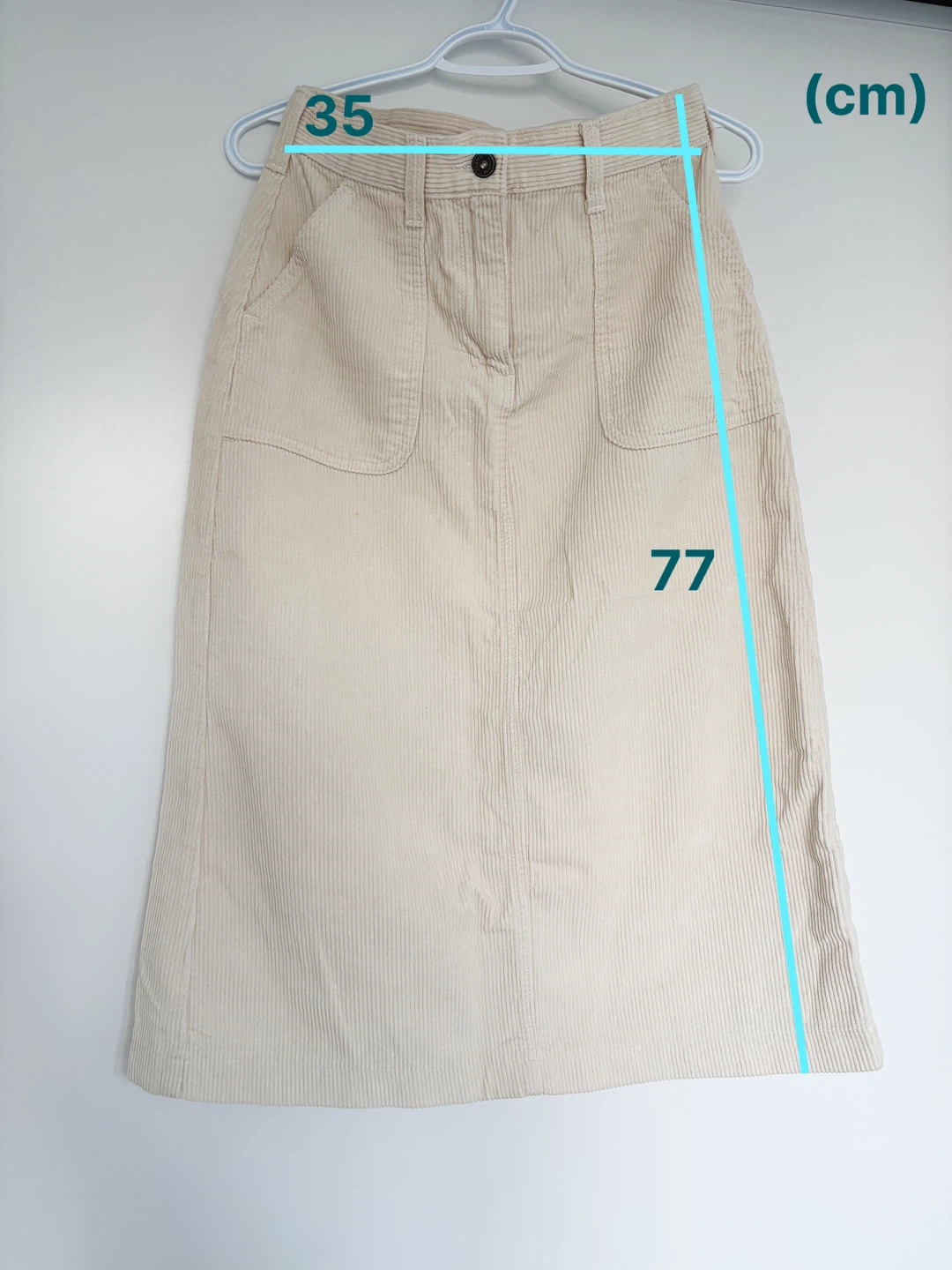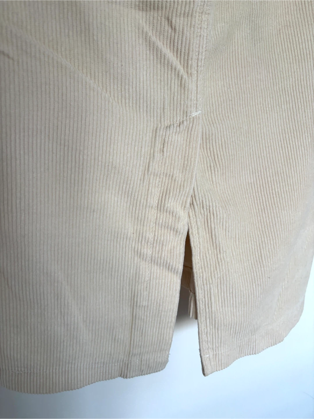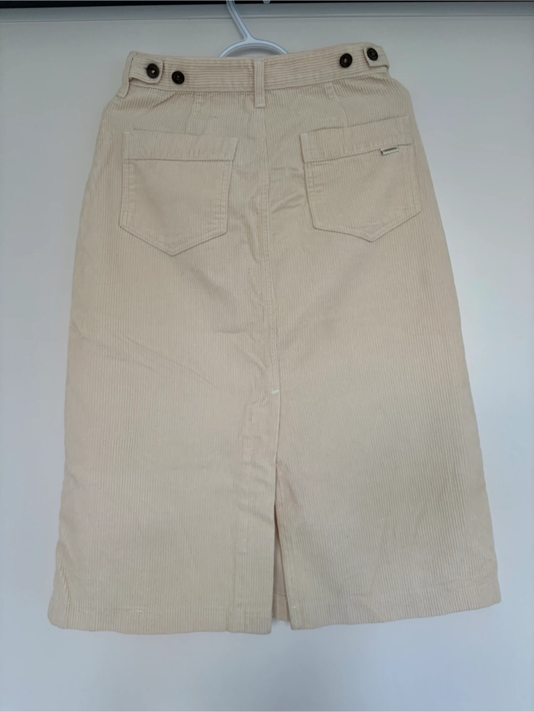 Selling a cute cream-coloured corduroy skirt! It's a stylish piece that's perfect for any occasion. The skirt features a classic corduroy texture and a comfortable fit.
