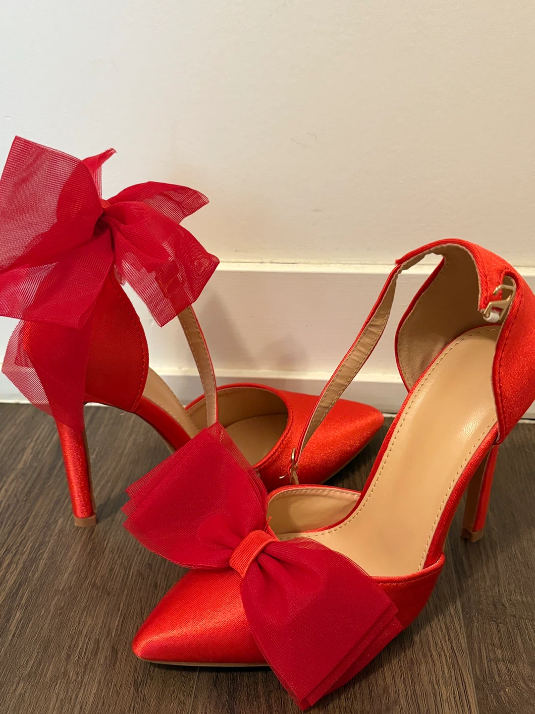 Red Satin Heels with Bow β Size 6
