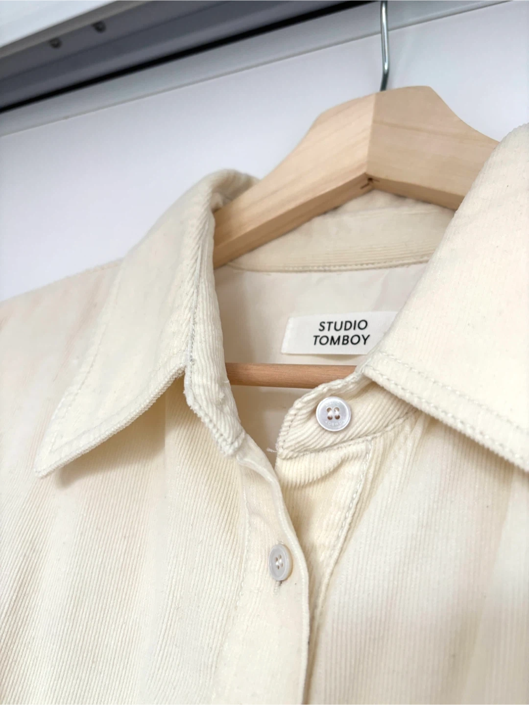 Studio Tomboy shirt in a lovely cream colour! It's made of corduroy material and features a classic button-up design. Perfect for layering or wearing on its own