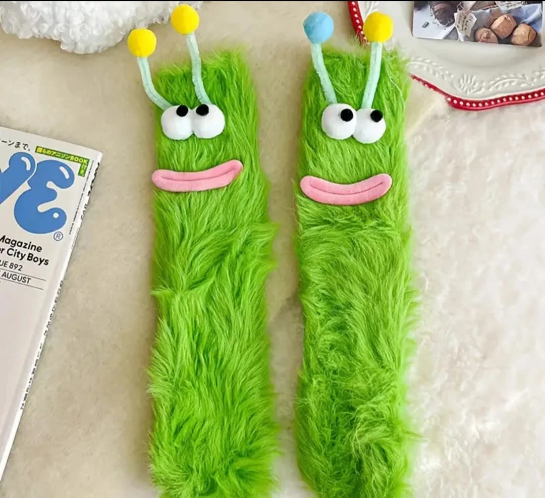 These adorable caterpillar plush socks are sure to bring a smile to your face! They come in a variety of fun colours and designs. Perfect for keeping your feet cozy and warm on chilly days! Each pare of socks is $5 dollars!