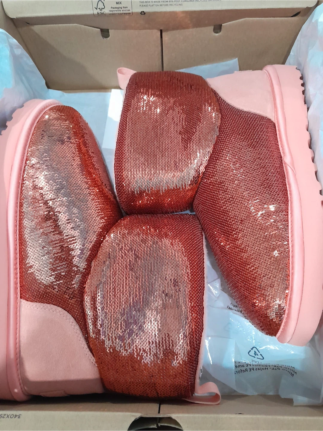Selling a UGG Classic Mini Mirror Ball boots in women's size 8! They are new and come with the original box. These are a stylish and fun twist on the classic UGG boot, perfect for adding a little sparkle to your outfit
