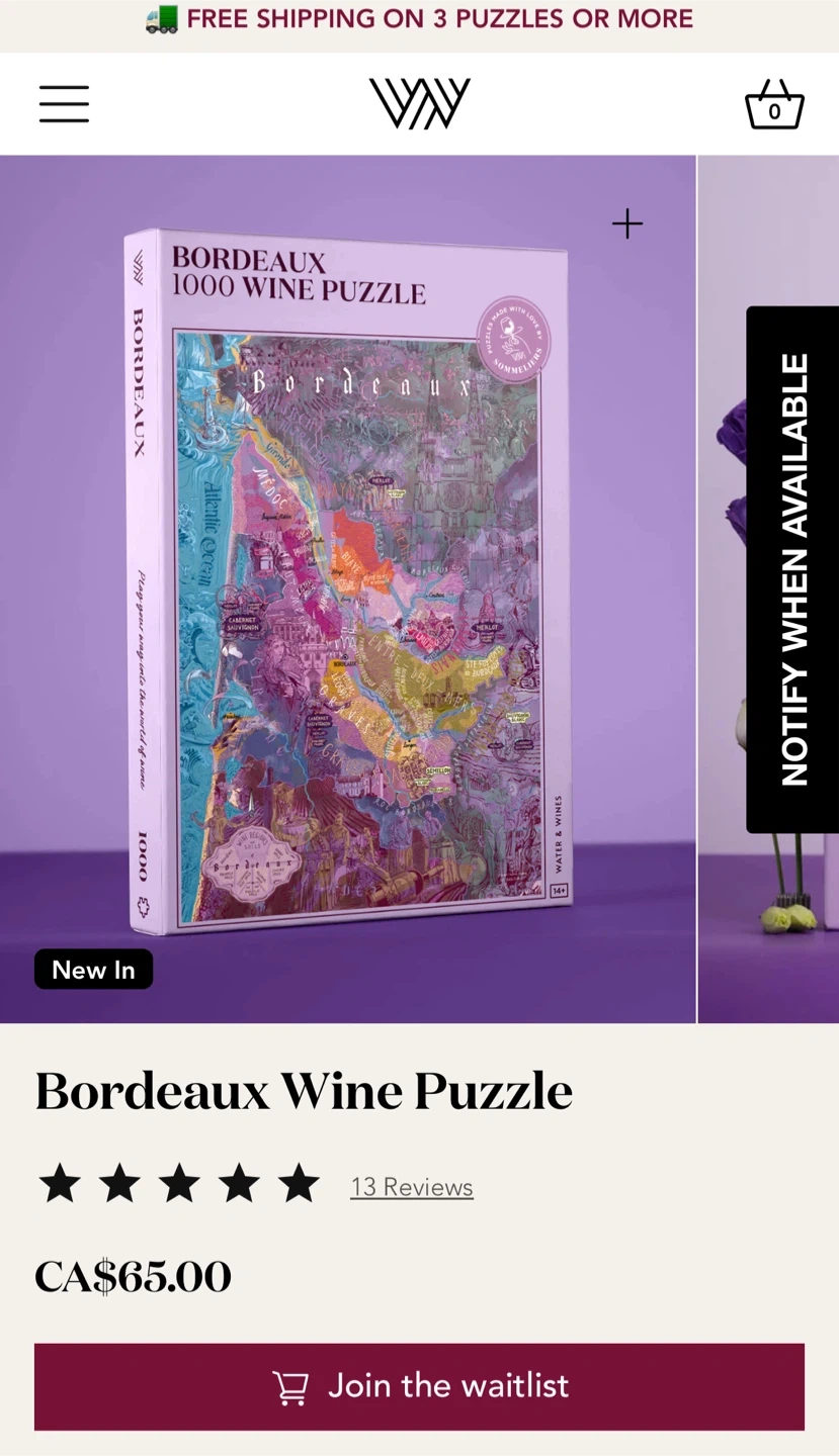 Brand new Bordeaux 1000 Wine Puzzle from Water & Wines!
