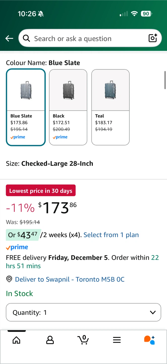 Item Name: Samsonite Centric Hardside Checked Spinner Suitcase – Blue, 28"