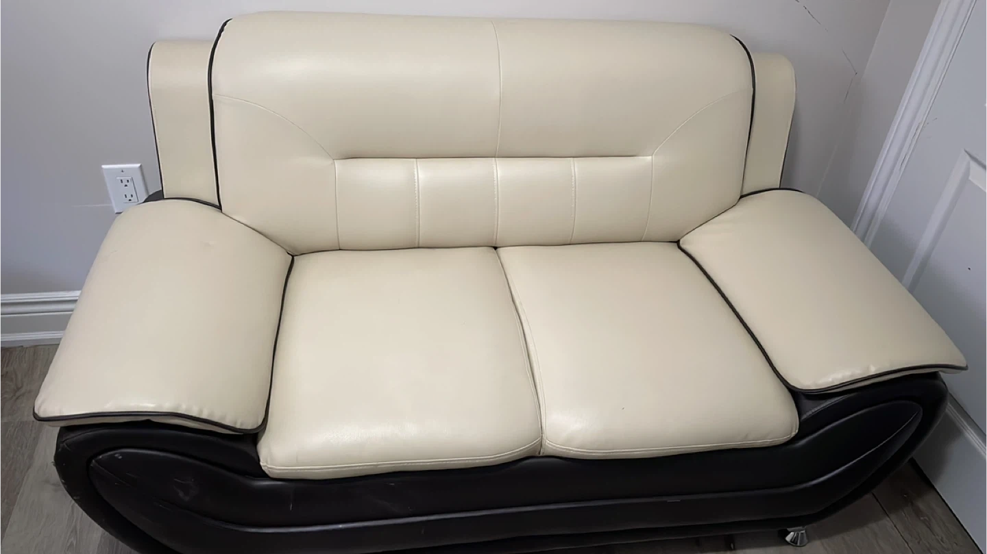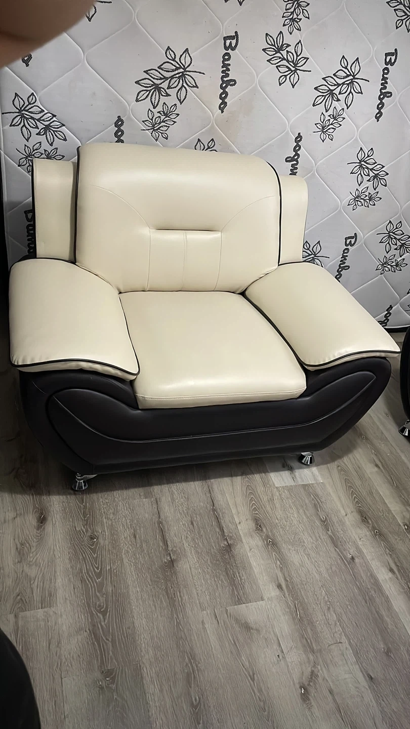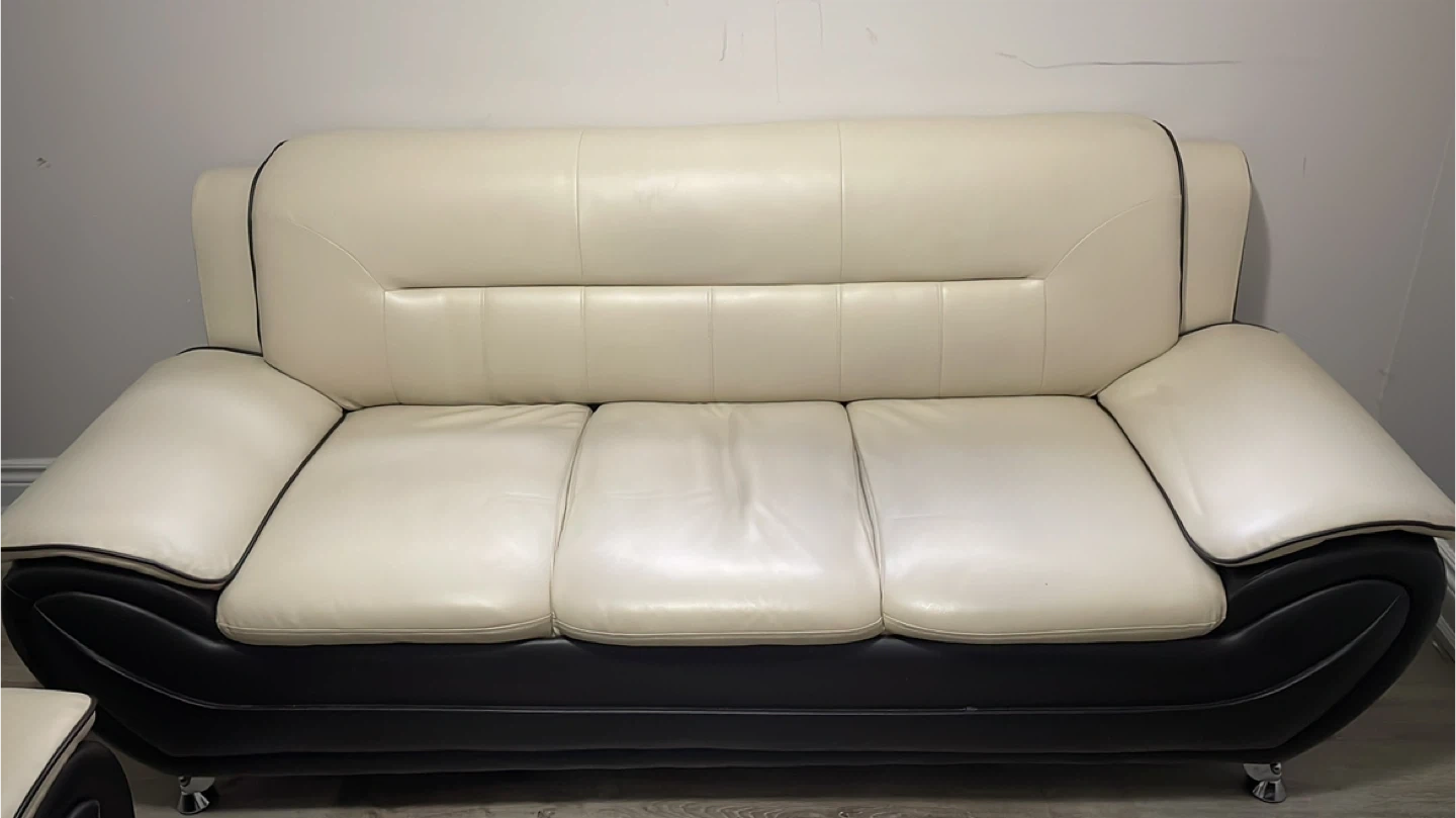 Selling a cream and black sofa set. It's in great condition and ready for a new home. It features a unique two-tone design that would look great in any living room or den. Contact me if you're interested!