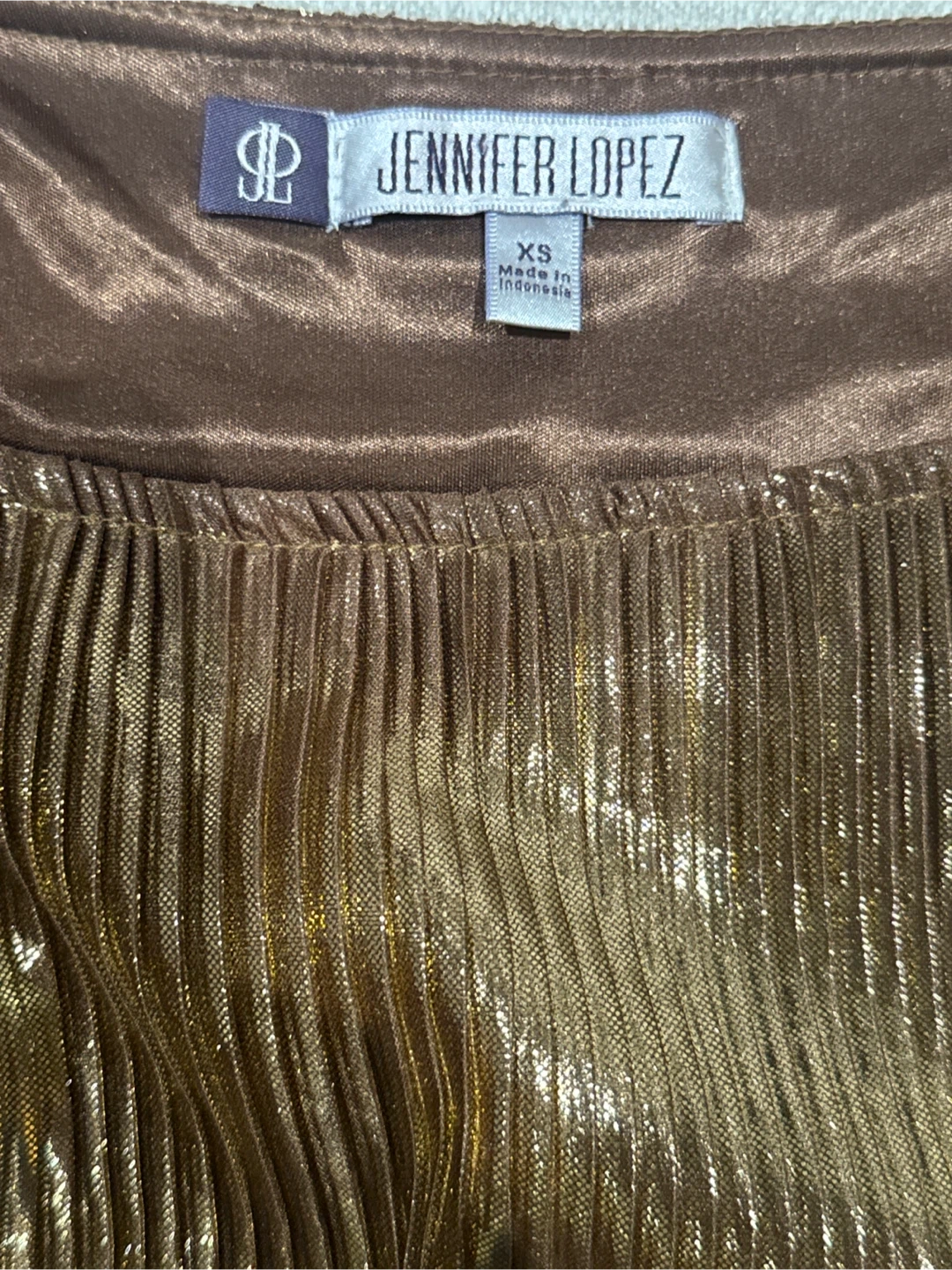 Jennifer Lopez Gold Plissé Blouse