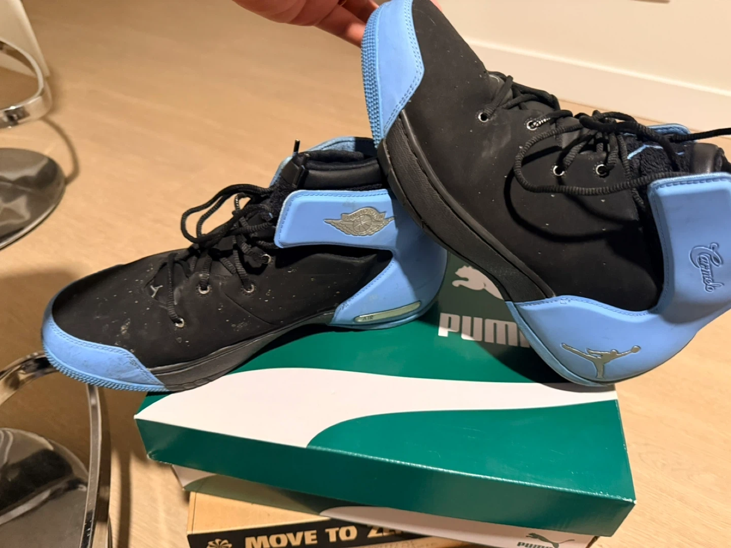 Buy & SellJordan Melo 1.5 Black/Blue Size 10.5Jordan Melo 1.5 Black/Blue Size 10.5$56Selling a pair of Jordan Melo 1.5 sneakers in black and blue. They are size 10.5 US. Not comes with the original boxConditionLike newWHERE TO MEETCheck LocationView MapSELLERrexxGilmore Place Tower 3100 reviews1 chats