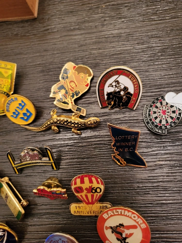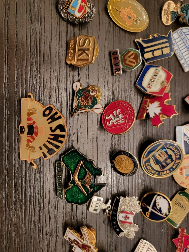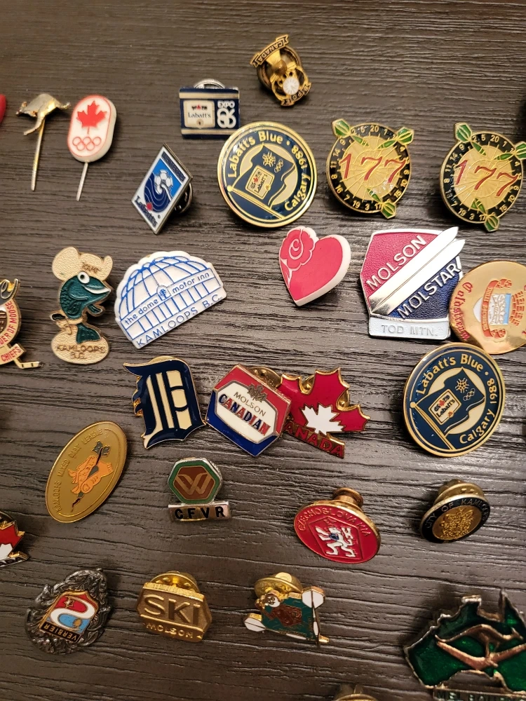 Selling a variety of vintage collectible pins! These pins feature different brands and places like Molson, Labatt's Blue, Countries, etc.They would be great for any collector or someone looking for a unique accessory.