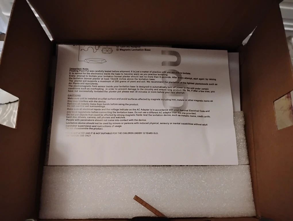 For sale, one "bandD" black hexagonal flower pot with magnetic levitating base. Bought from Amazon, this beautiful modernist center piece features an angulated shape consistent with the art Deco motif with a smooth matte finish and is perfectly sized for air bonsais and such. The item has never been used for home nor office use, but used only twice for testing of product functionality, including just before posting of sale. There are no visible scratches, dents, cracks, deformities, or damages affecting its function, as the product has remained in its original box the entire time of possession. Asking price is $60 (cash only). With all sales being final. The seller is open to (ODO) offers. Special cases where refunds may be made available must include the product not fulfilling its expectations to function after sale, upon which a thorough examination of the product will be done by the seller to determine its inherent dysfunction. Any (determined) damage caused after sale by the second party will void the refund. Total items included are....