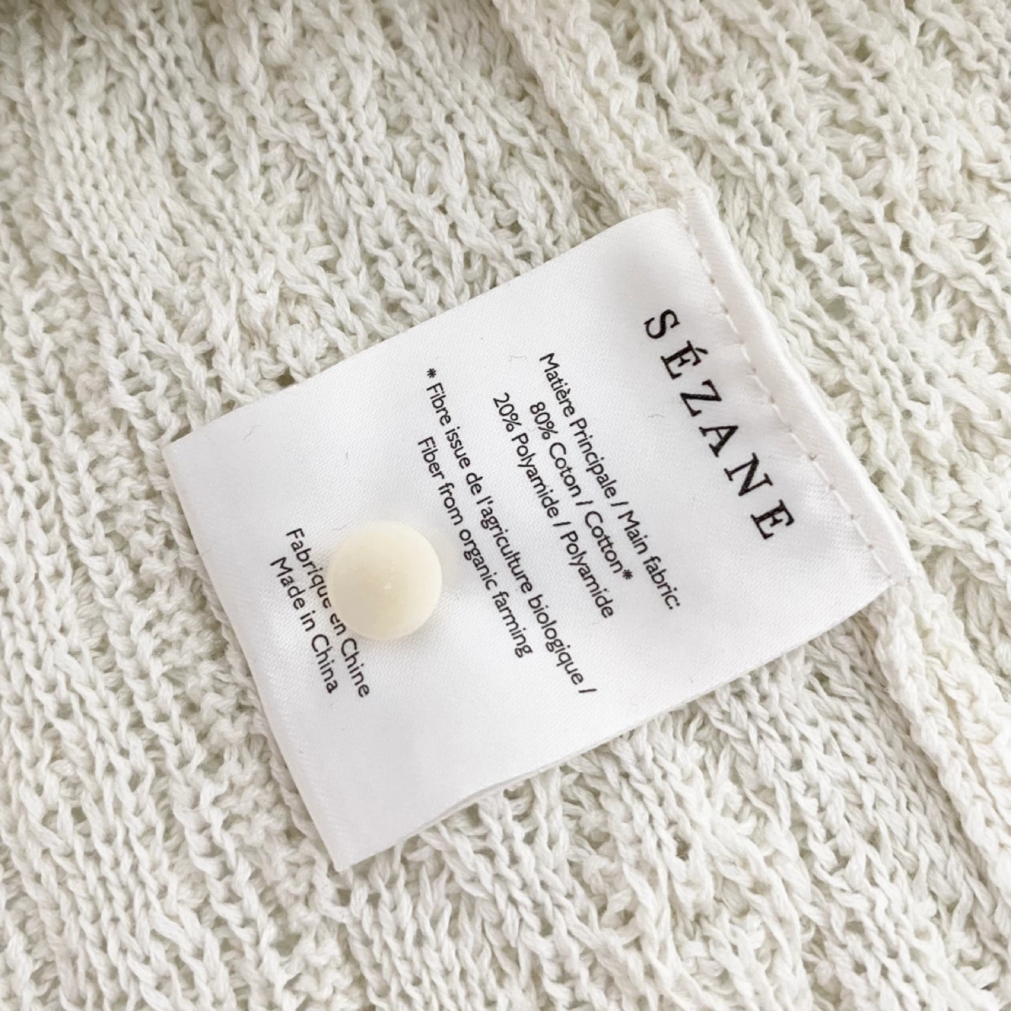 Sezane Alessandro jumper. Made of light to medium weight 80% cotton, 20% polyamide. It's stretchy and very flattering. Main label has been removed. Otherwise there's no staining or damage. In great condition.