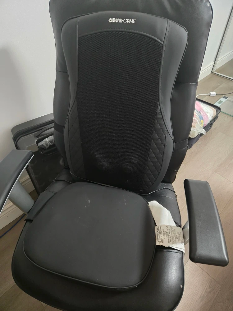 Selling an ObusForme rechargeable shiatsu cushion with heat. It's designed for the human body and endorsed by the American Chiropractic Association. Enjoy a complete massage experience with shiatsu massage, vibration massage, and heat to enhance your relaxation. It features rotating nodes for deep muscle massage and zone control to target your upper or lower back