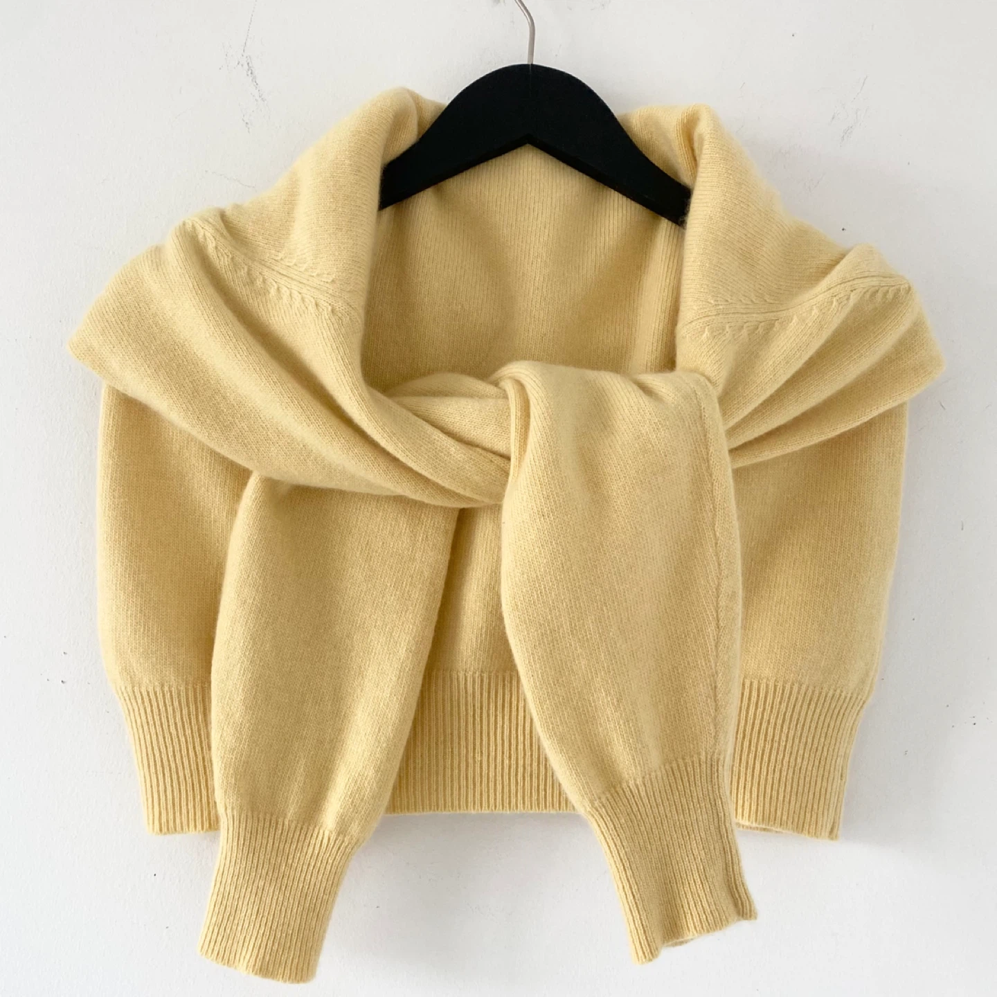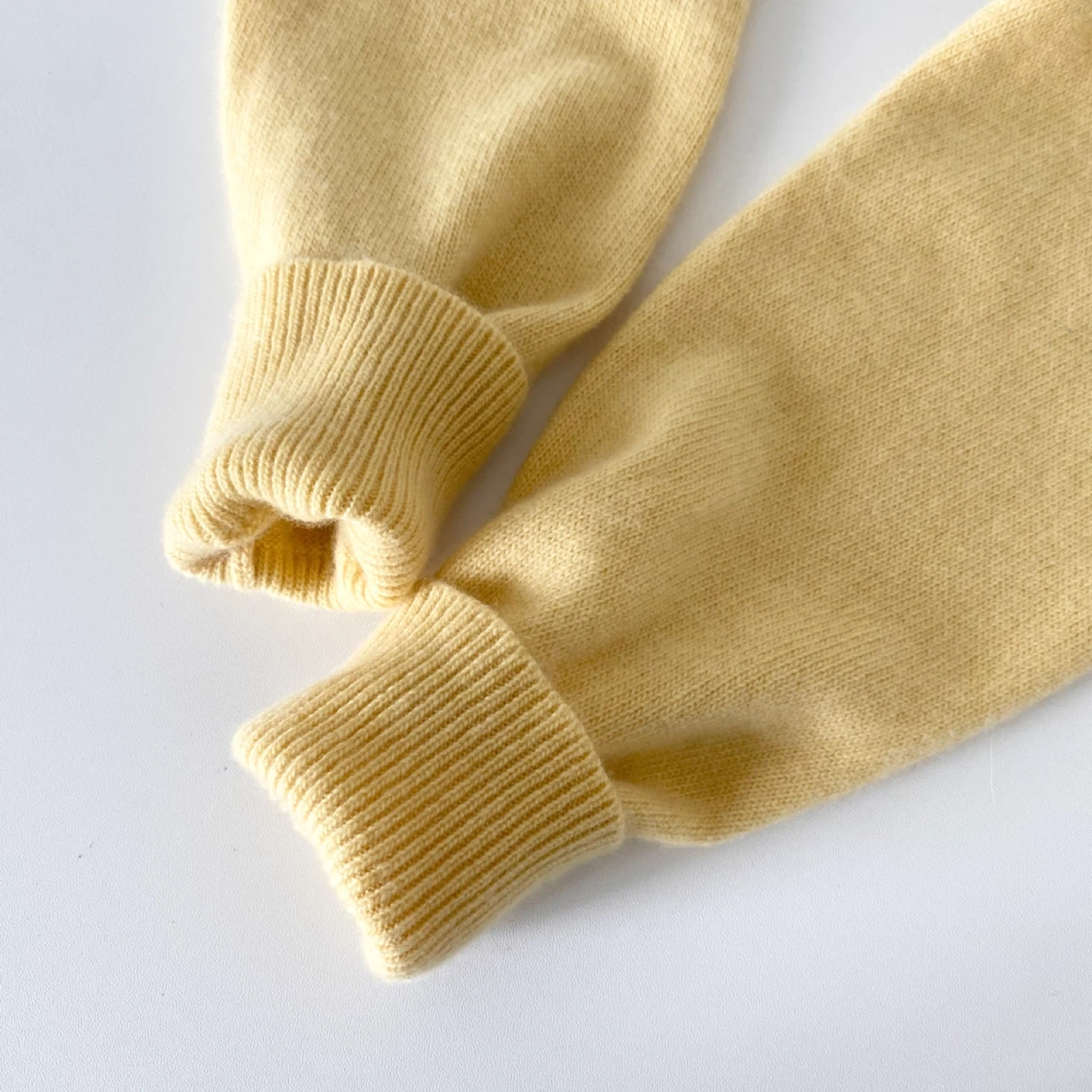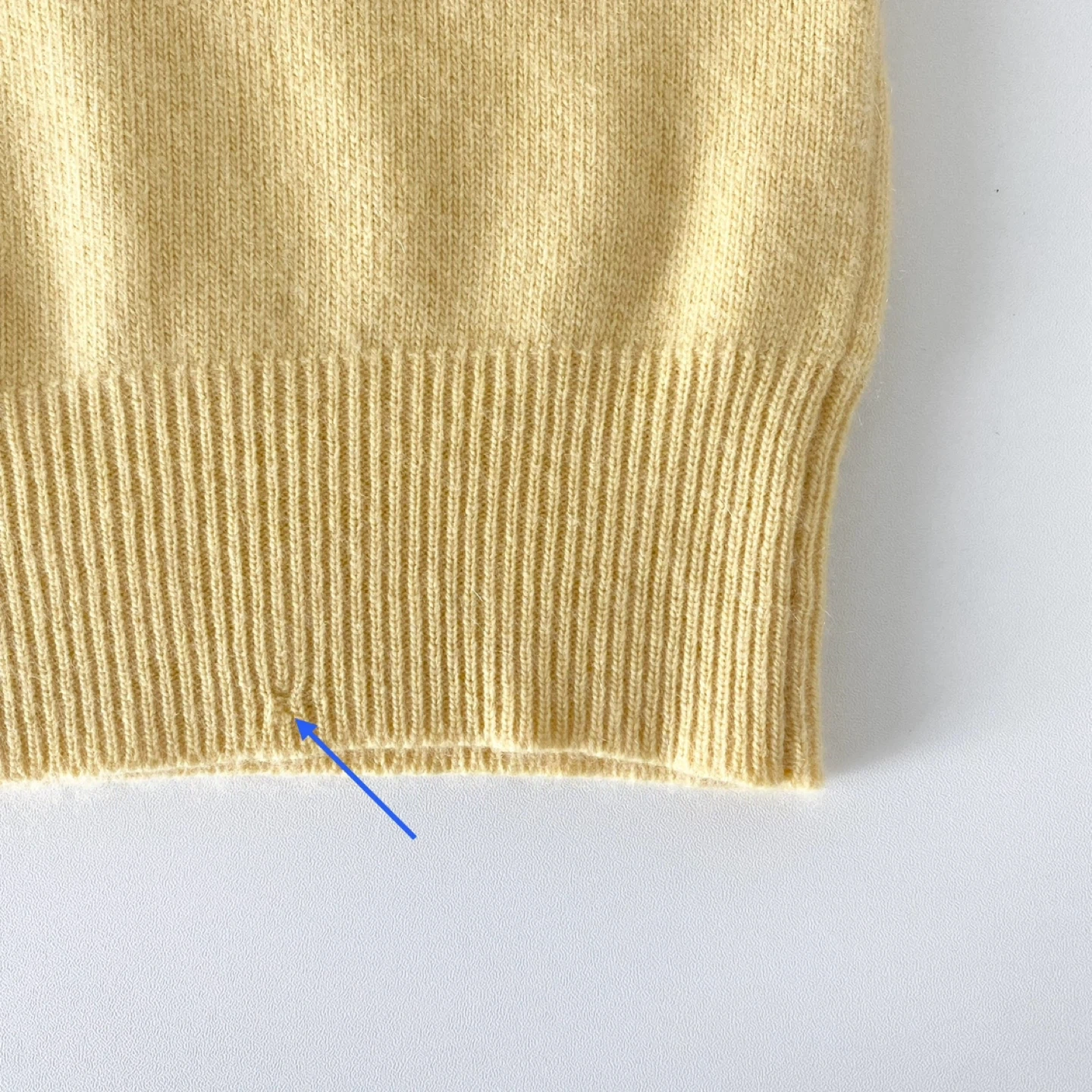 90's Vintage Lord and Taylor v-neck sweater. Made of Medium Weight 100% cashmere in a soft yellow colour. It's incredibly soft, a bit fluffy, luxurious and not itchy at all. There are minor holes which have been mended as per the pics with an arrow. They are not really visible. Otherwise no staining or pilling. It's clean and in excellent condition.