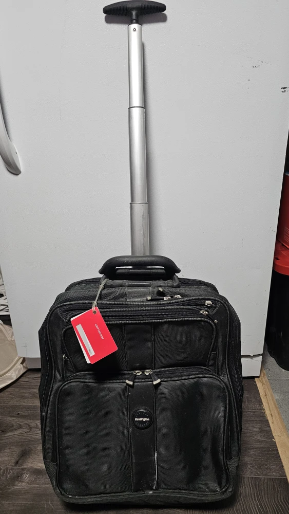 Selling a Kensington Contour Roller laptop bag in black. It's perfect for travel or everyday use! It has some signs of wear, but it's still in good condition and ready to go.