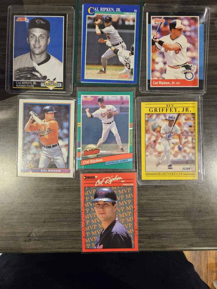 Selling a collection of baseball cards featuring Cal Ripken Jr. and Ken Griffey Jr. Great for any baseball card collector!