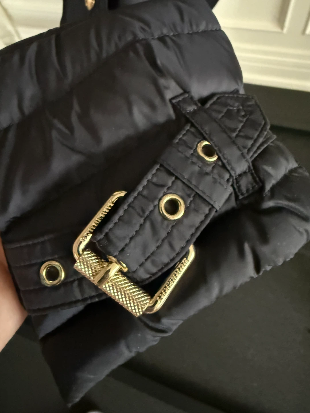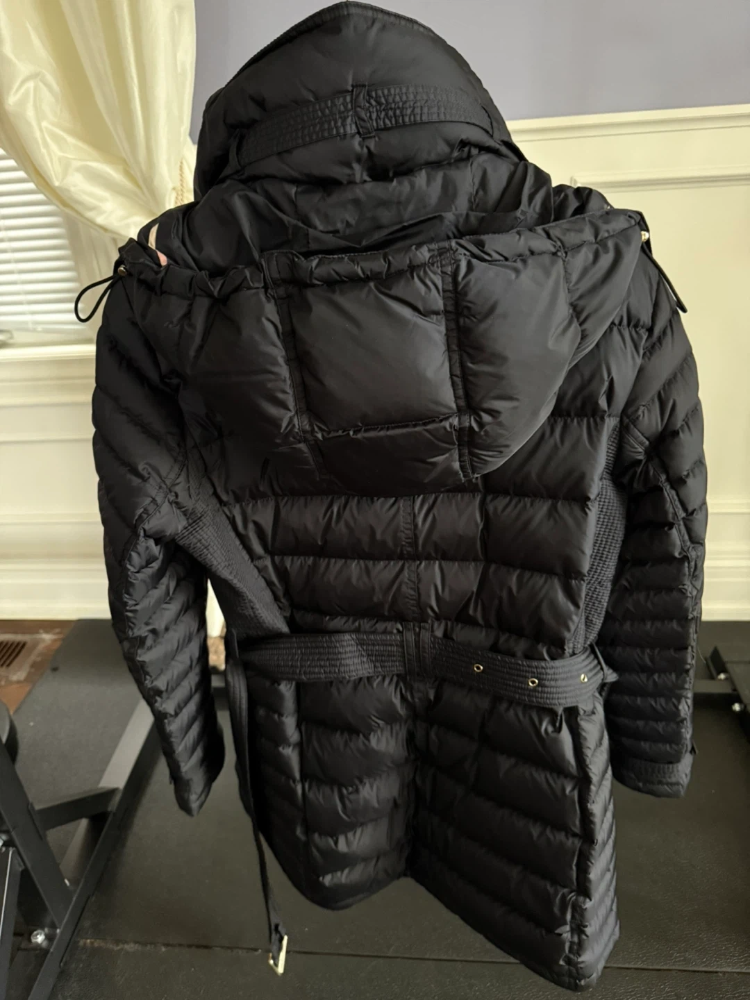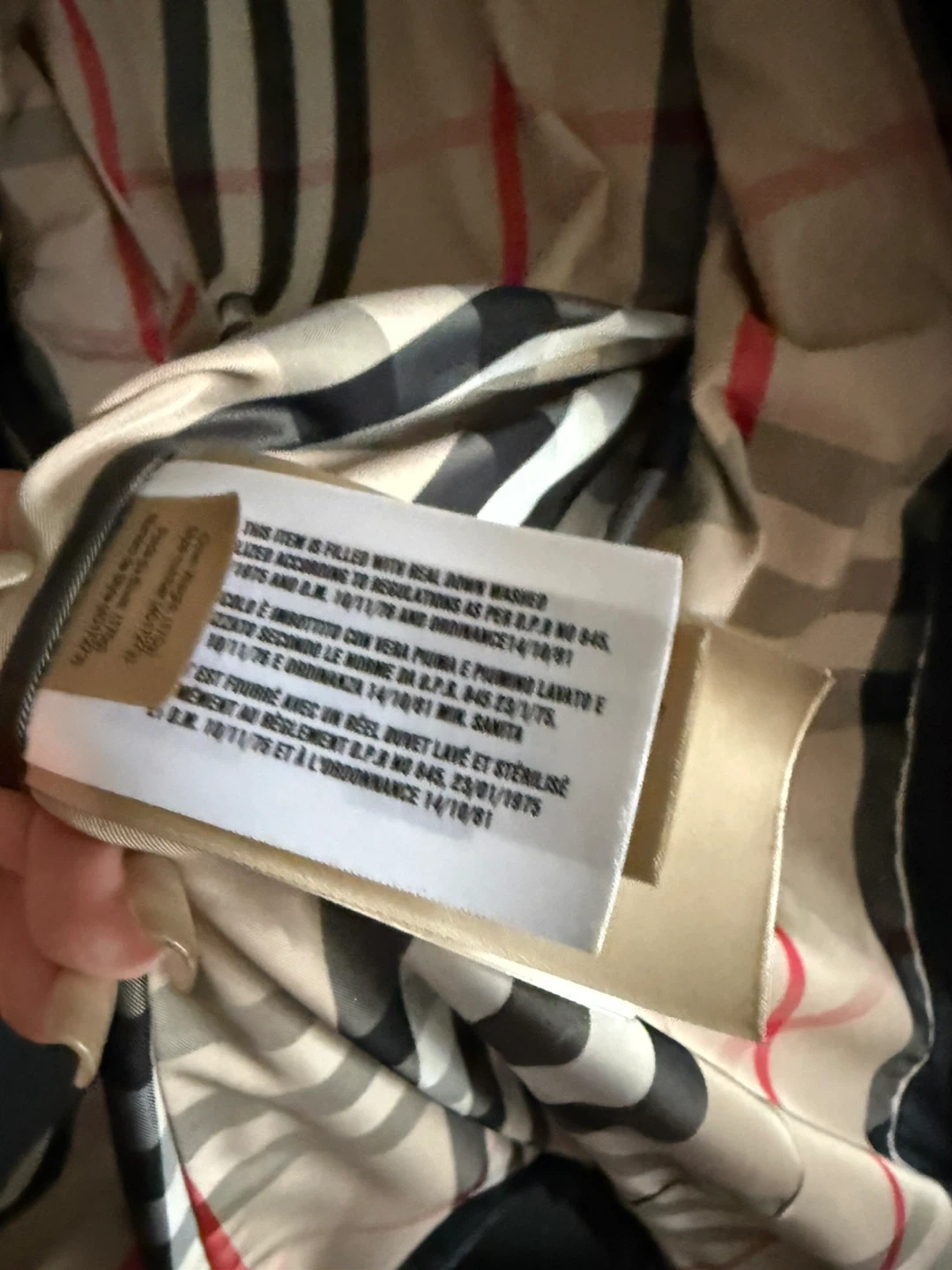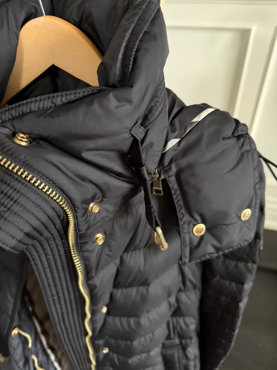 Selling a stylish Burberry London England navy down puffer coat. It features a classic design with gold-tone hardware and the iconic Burberry check lining. Perfect for staying warm and fashionable during the colder months!