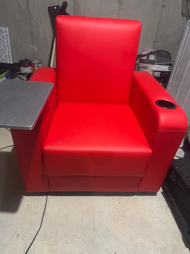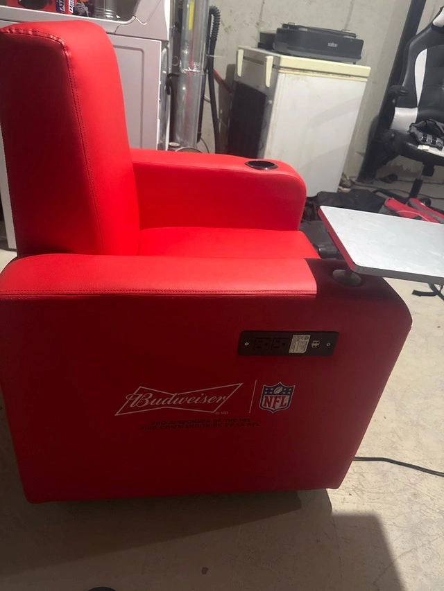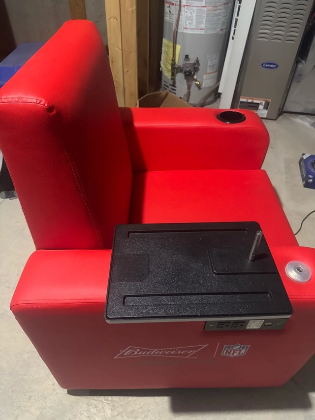 Comfortable chair for a man cave or just a casual nice chair to have around. Table rest comes out as shown in the pictures, hardly any damage practically new. 4 plugins on the right side of the chair by the table rest. Looking for $300 but willing to go lower.