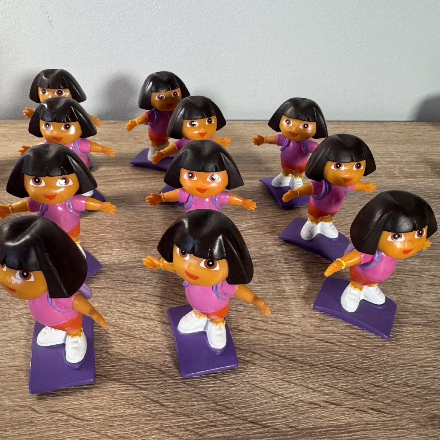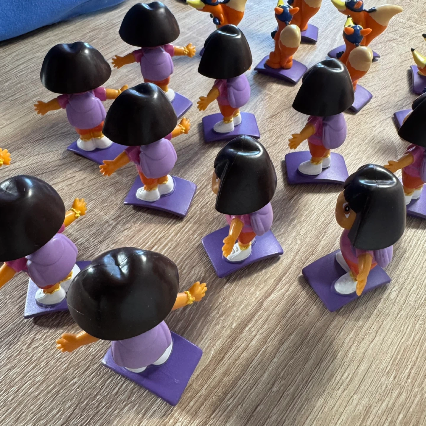 A collection of 18 pieces Dora the Explorer and Swiper action figures. These toys are designed for young children's play. Includes multiple figures.