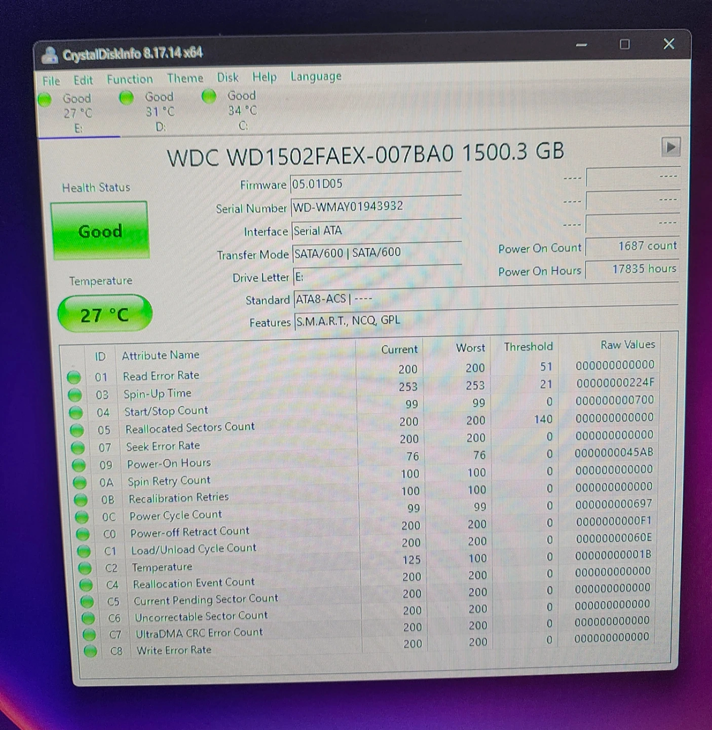 Western Digital 1.5TB SATA Hard Drive WD1502FAEX
