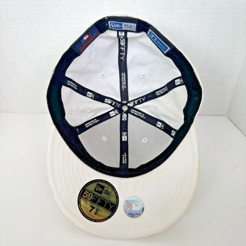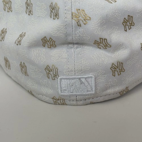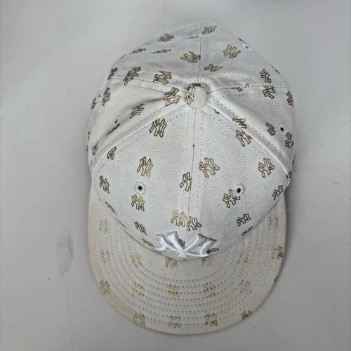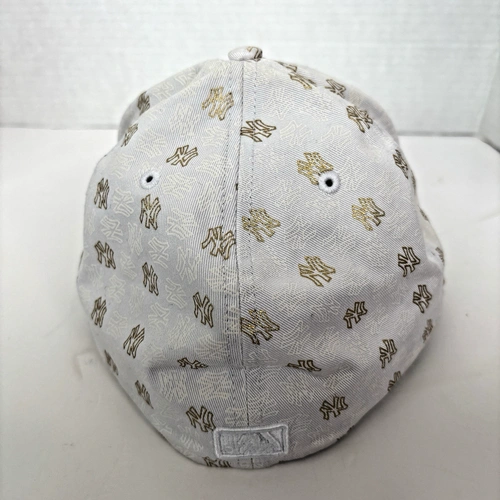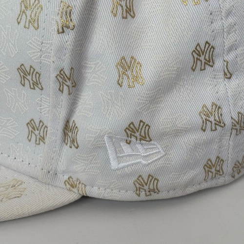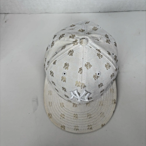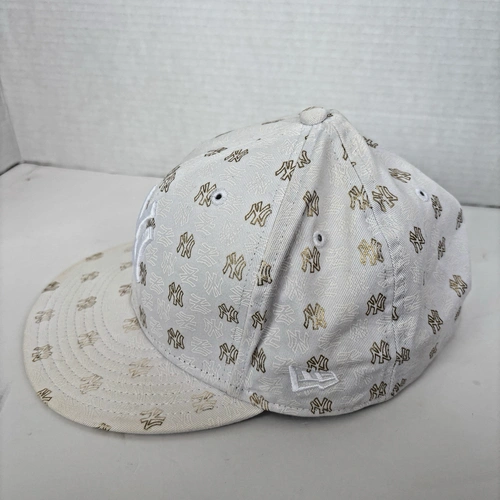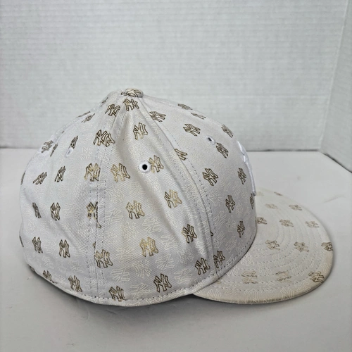 New York Yankees New Era 59FIFTY Fitted Hat Cap Size 7 5/8 NY Gold Logo All OverOfficial Merchandise, White/Ivory with NY Logo in Gold all over the hat. Pre Owned in very good condition. Thanks for stopping by.