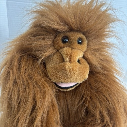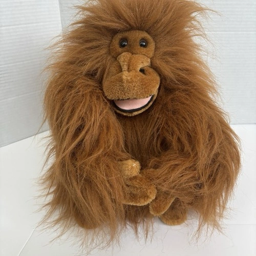Vintage 1988 Chrisha Playful Plush - Brown Shaggy Orangatang Monkey Plush 14". Orangutang's hands stick with hook-and-loop fastener. Overall in very good condition.