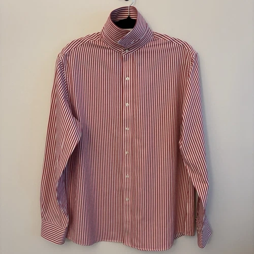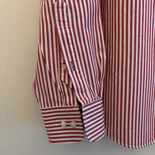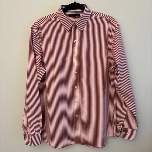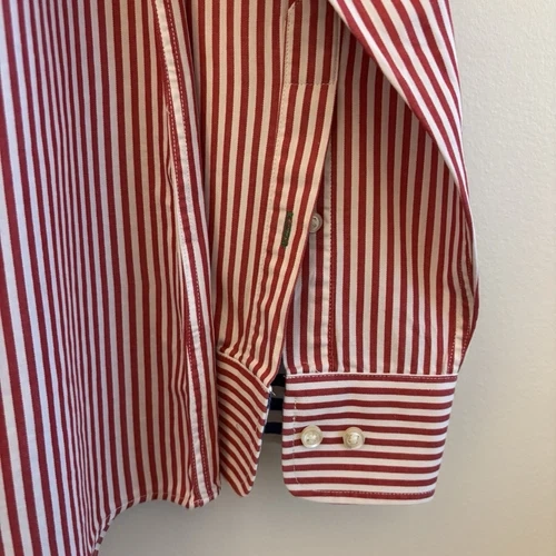 Tommy Hilfiger Men's Long Sleeve Button Up Shirt Red & White Stripes - Large