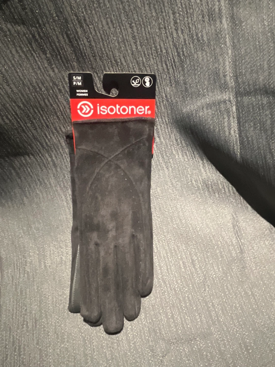Selling a pair of isotoner women's gloves in size S/M. They are black and appear to be in excellent condition. Originally bought for $24.97