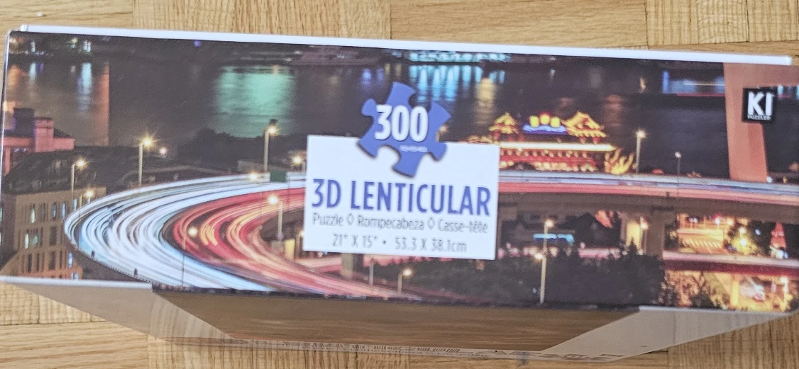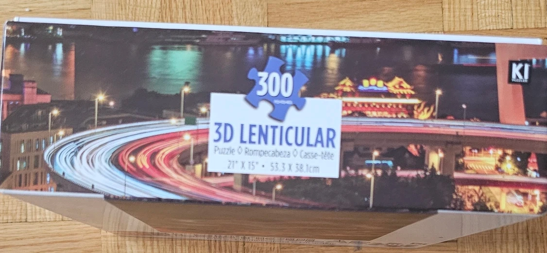 Selling a KI Puzzles 3D Lenticular puzzle with 300 pieces! The puzzle dimensions are 21" x 15" or 53.3 x 38.1 cm. Recommended for ages 12+