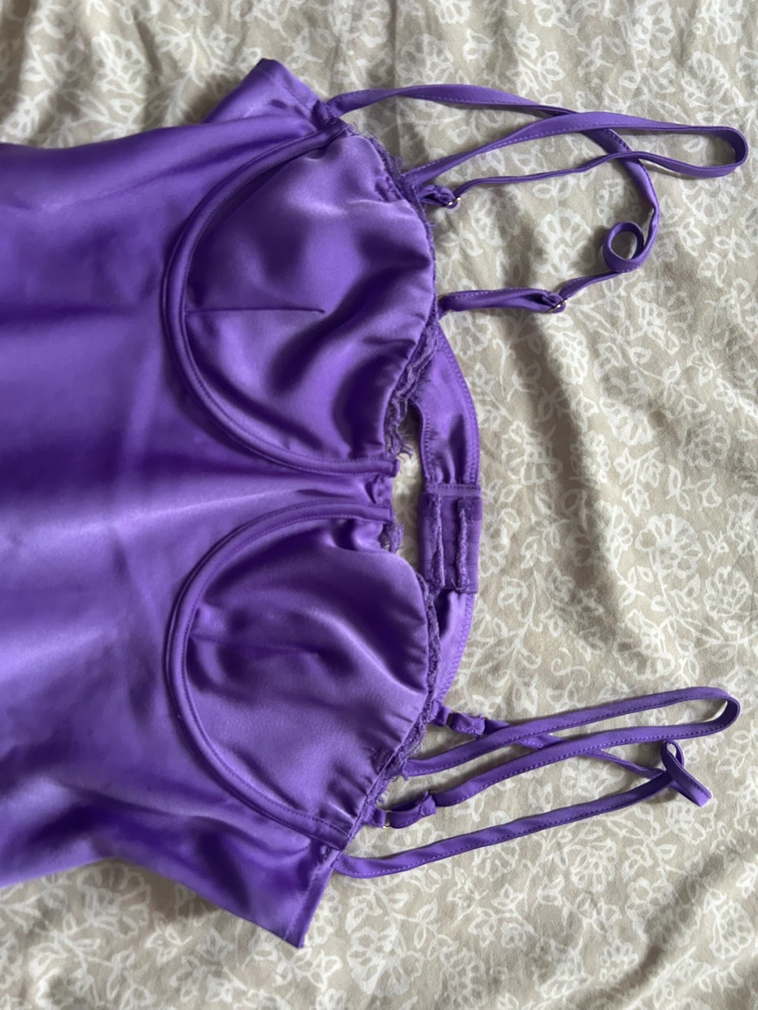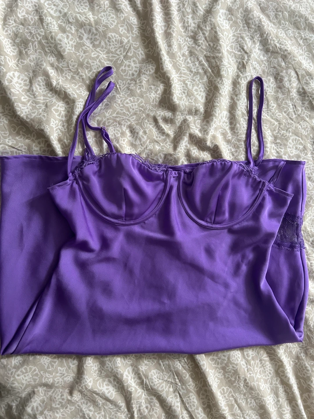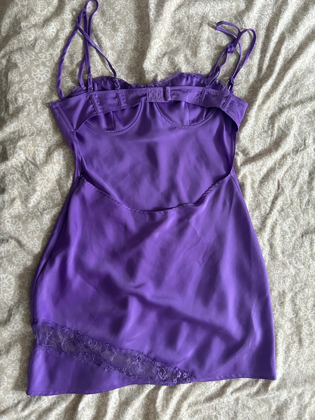 Joslyn is a cute purple mini dress! It features a bustier-style top and delicate lace detailing along the bottom.