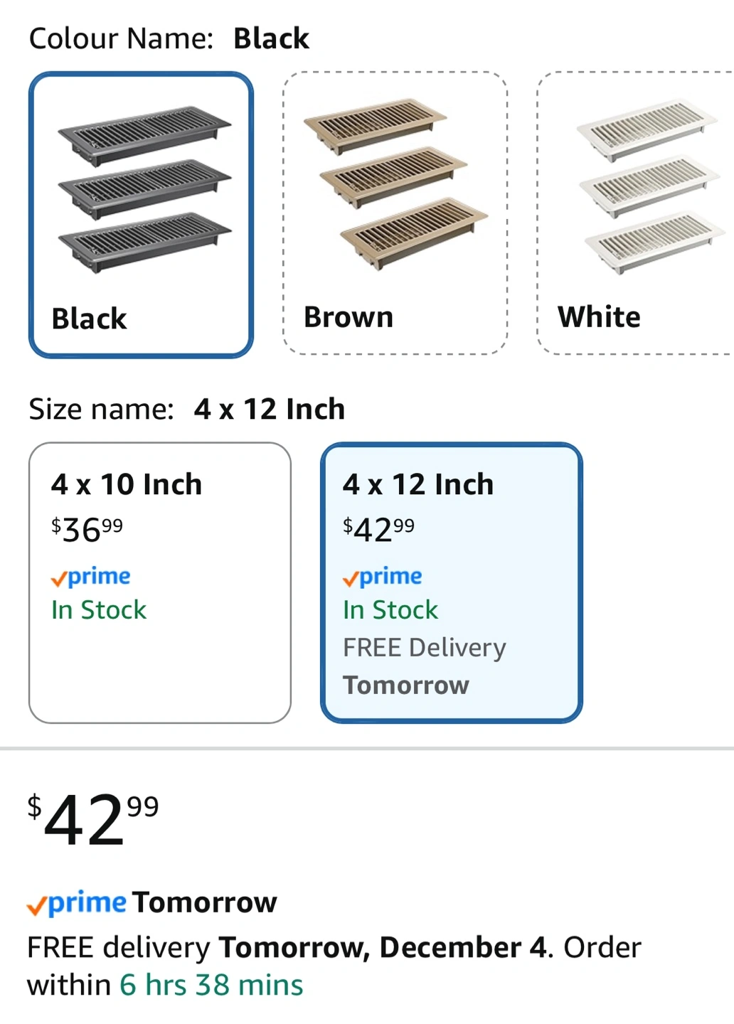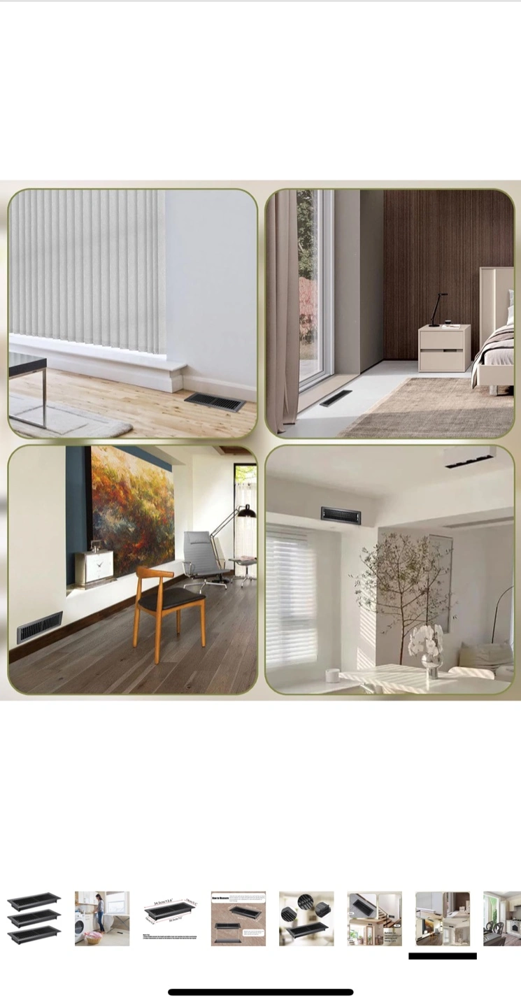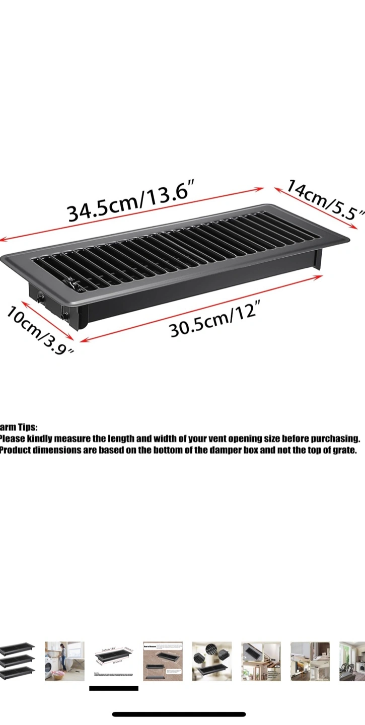 Selling a set of three JuxYes floor register vent covers. They are heavy-duty and finished in black. Each vent cover measures 4 x 12 inches. Great for home floor heaters!
