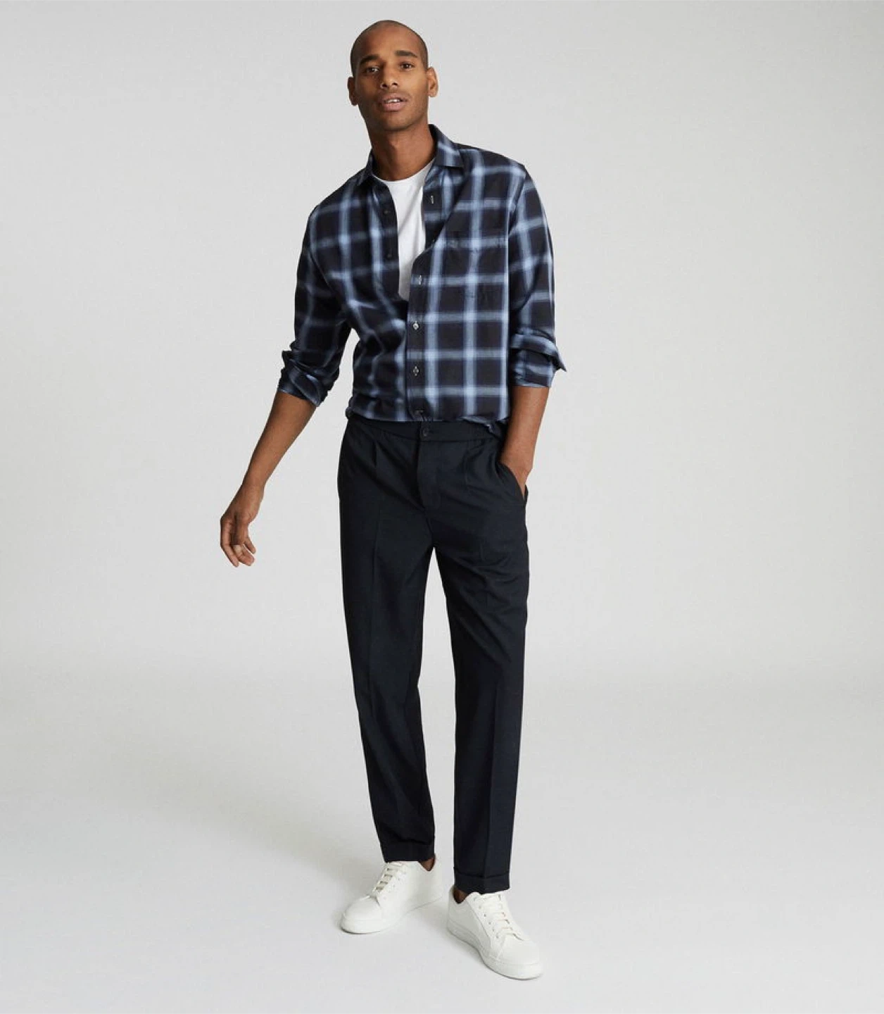 Ideal for cooler months as it lends itself just as well to layering as it does to being worn solo. The States in navy is woven with a total check and it's finished with a chest pocket. Wear it with black jeans and Chelsea boots for a casual yet stylish downtime look.