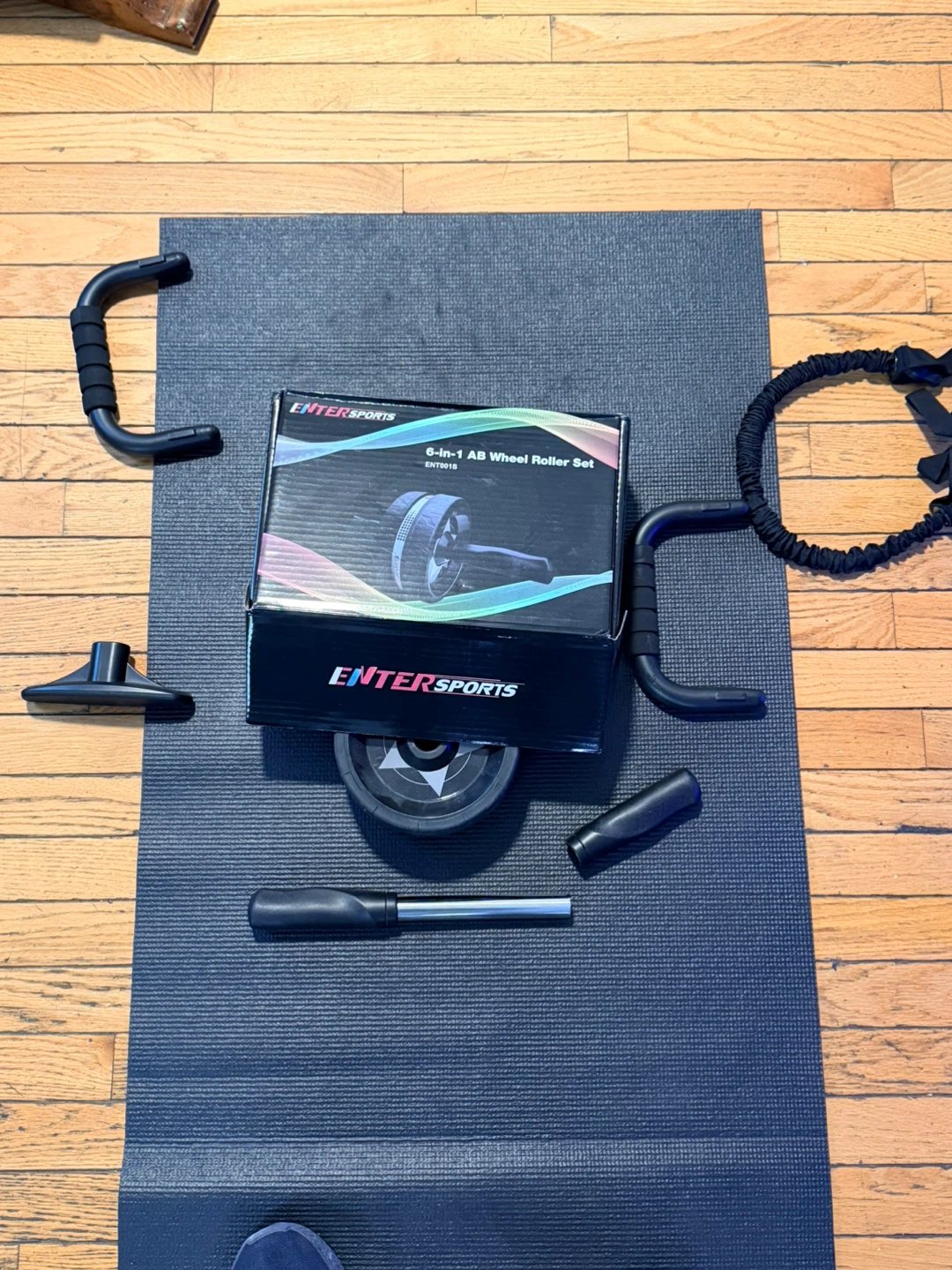 Selling an EnterSports 6-in-1 AB Wheel Roller Set! It comes with the box and all the original components and floor pad. Get ready to take your workout to the next level