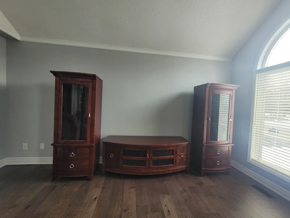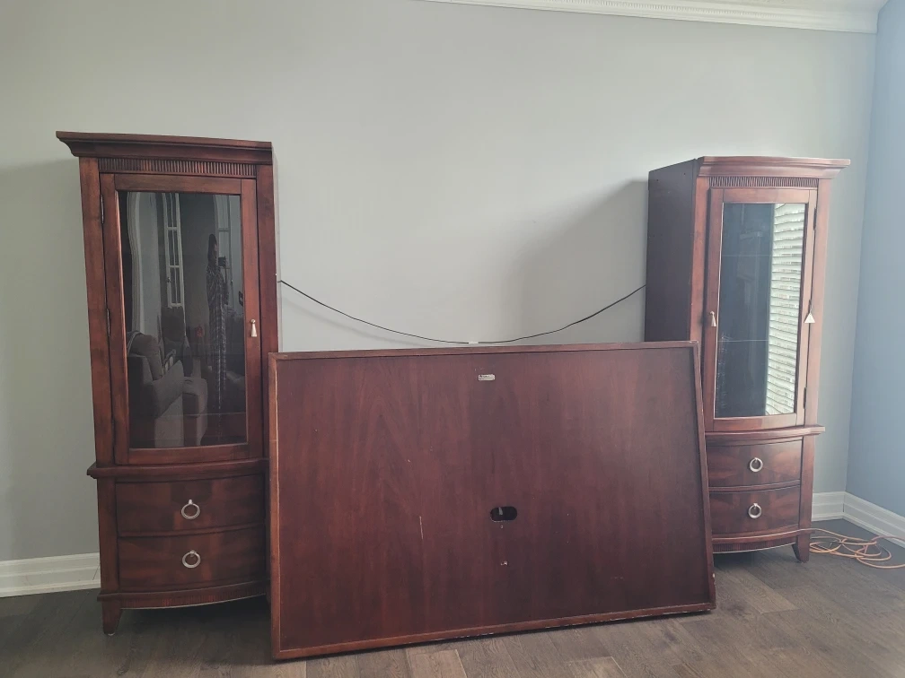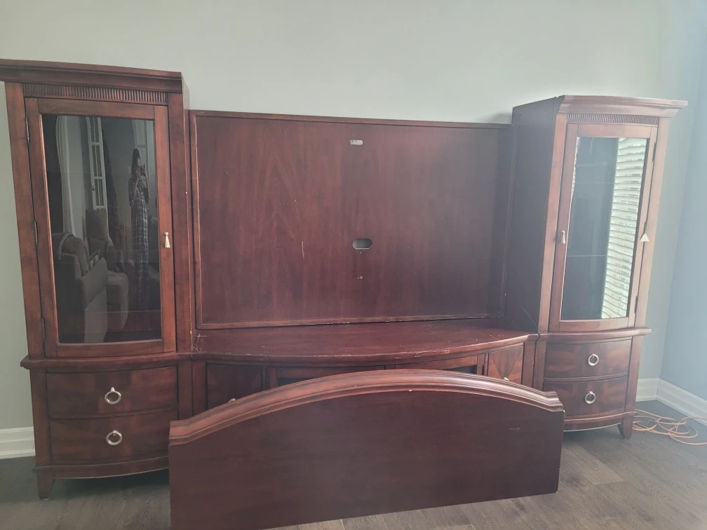 Selling a large wooden entertainment unit. It's in good condition and comes in multiple pieces for easier transport. Perfect for a living room or entertainment space!