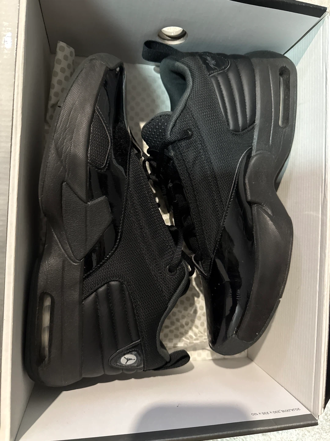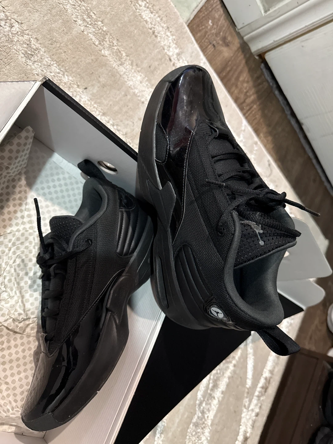 Selling a pair of Jordan XIV (14) Retro shoes in black.