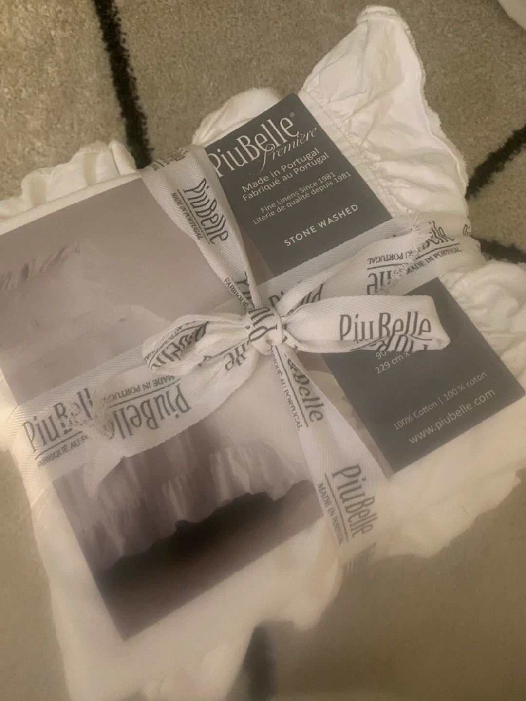 Selling a brand new PiuBelle king size duvet cover set! It's stone washed and made in Portugal. The size is 90 x 229 cm and is 100% cotton. It's still in the original packaging