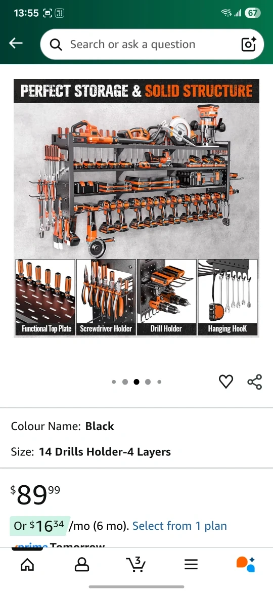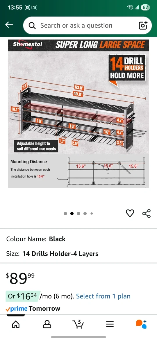 Selling a handy Shomextol tool organizer! It's black and has 14 drill holders with 4 layers for great garage organization. The dimensions are: provided in the image. Adjustable height to suit different use needs. Perfect for storage and has a solid structure!